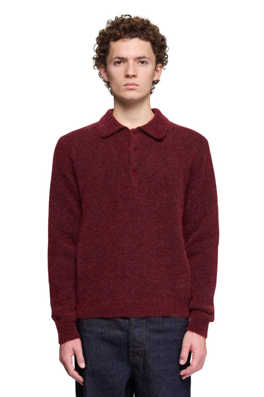 What’s better than a red polo? A red polo spun from luxurious mohair. Sunflower’s mohair polo is equal parts playful and polished. Its fluffy texture and vibrant hue make it a standout layering piece for the season ahead — blending into the scenery on an autumnal walk through the trees.