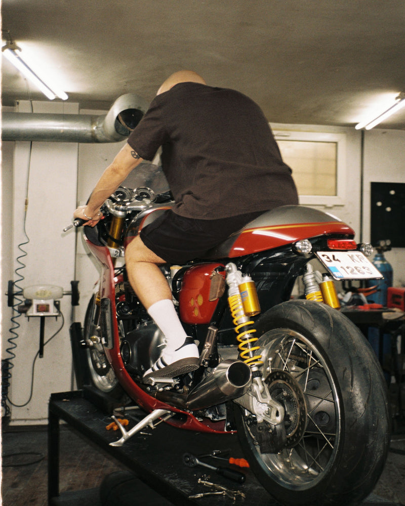 As I was also interested in photography and videography, I took courses and started working as a freelance cameraman. When agencies started offering jobs beyond what I could handle alone, a few friends and I decided to open a production company. We stopped importing and started shooting sports-related photos and videos, making documentary videos for brands like Redbull, Nike, Puma, and Monster. Around this time, I decided to build a motorcycle in my living room.
