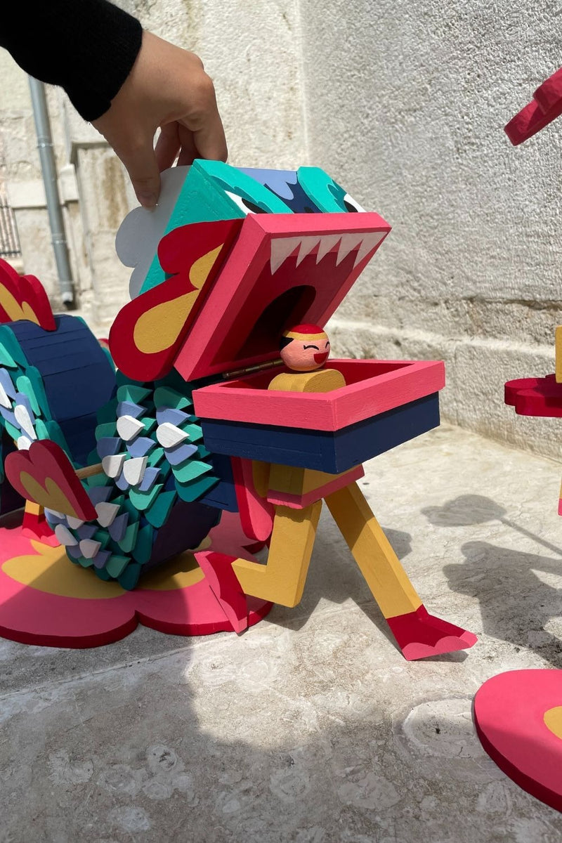 After a wonderful four years, I chose to study Graphic Design in university, likely influenced by my early thematic drawings. I got into Anadolu University’s Fine Arts Faculty in Eskişehir, where I studied for five years. During this time, I kept reflecting on what I’d do after graduation. The small sculptures I made with my grandmother, my father’s love for toys and woodworking, my design education, and İzmir’s colors all played a huge role in my style. Starting in my third year, I began adapting school projects into my own work, making them more enjoyable and taking on my first commissions. After graduating, I fully dedicated myself to my craft, eagerly absorbing everything I wanted to know—like a sponge. Now, I’m focused on sharing what I’ve collected.
