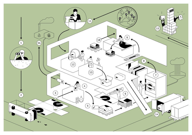 FREITAG’s one-of-a-kind bag production process for process engineers, flowchart fetishists, icon idolizers and all the other info junkies who prefer visual learning to reading: