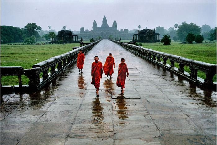 Steve McCurry, Monks in the Rain, Cambodia, 1999.