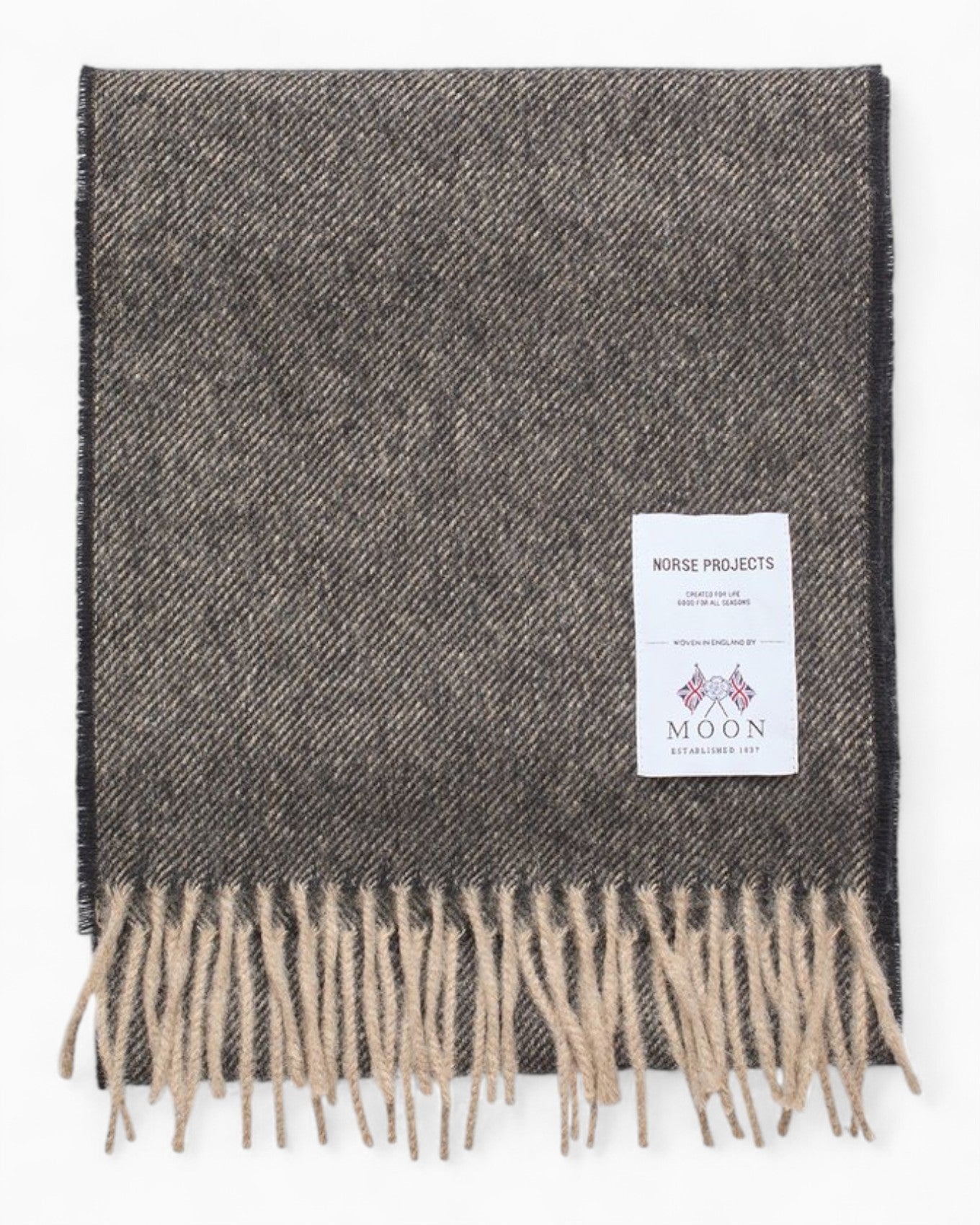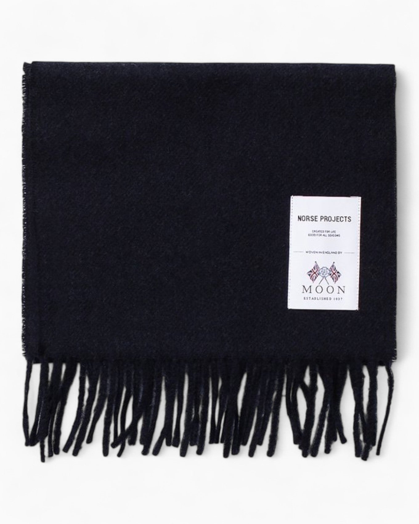 The Moon Lambswool Scarf is developed and woven by Abraham Moon in the UK. The scarf is offered in classic as well as seasonal colours.