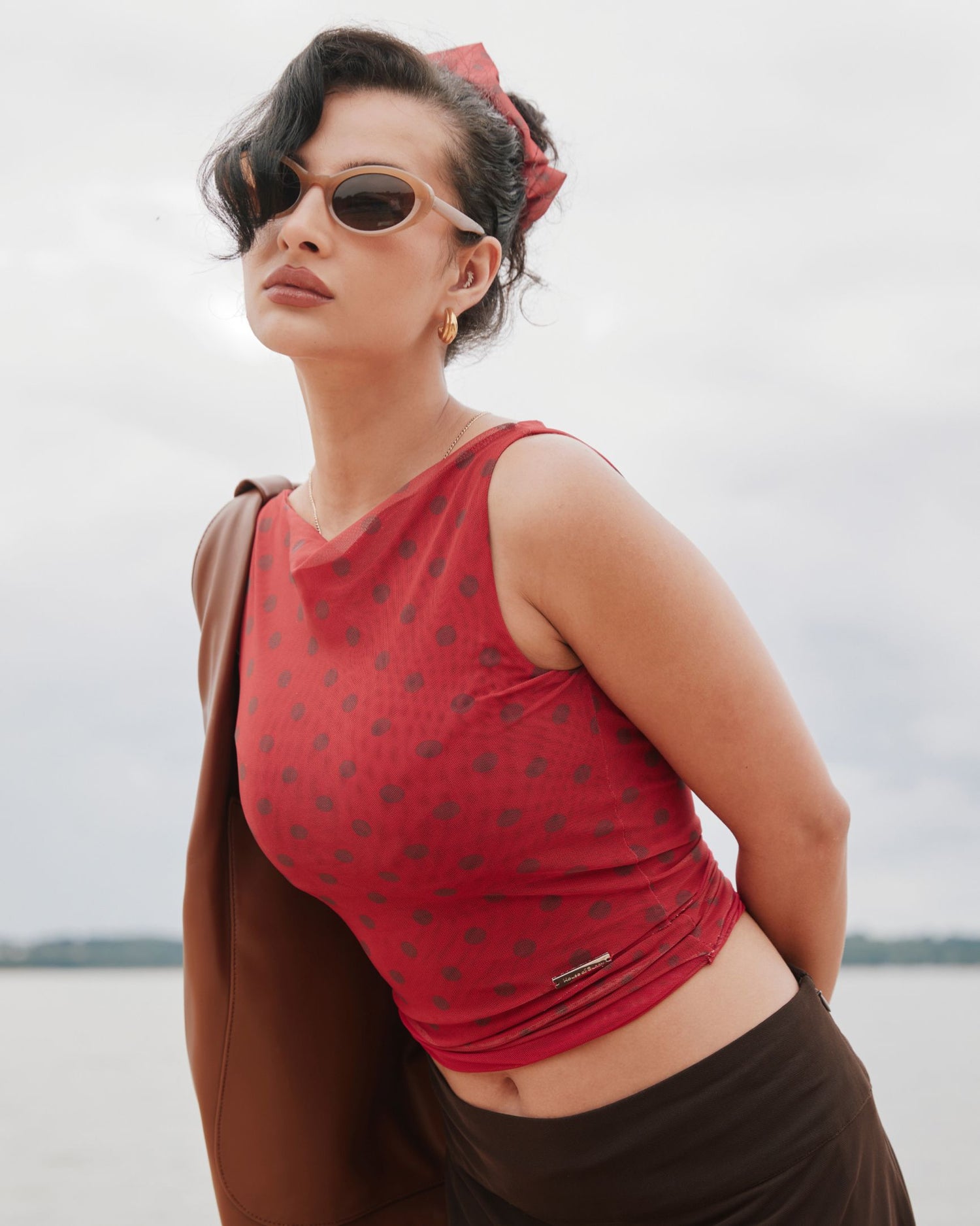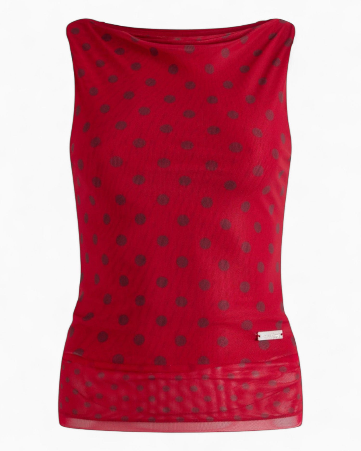 Double Layer Polka Dot Mesh Women's Topis designed for those who want to showcase a modern, sophisticated style. Crafted from sheer polka dot mesh and featuring a double-layered construction, it combines elegance with comfort. Its refined details and slim fit add a polished touch to any outfit.