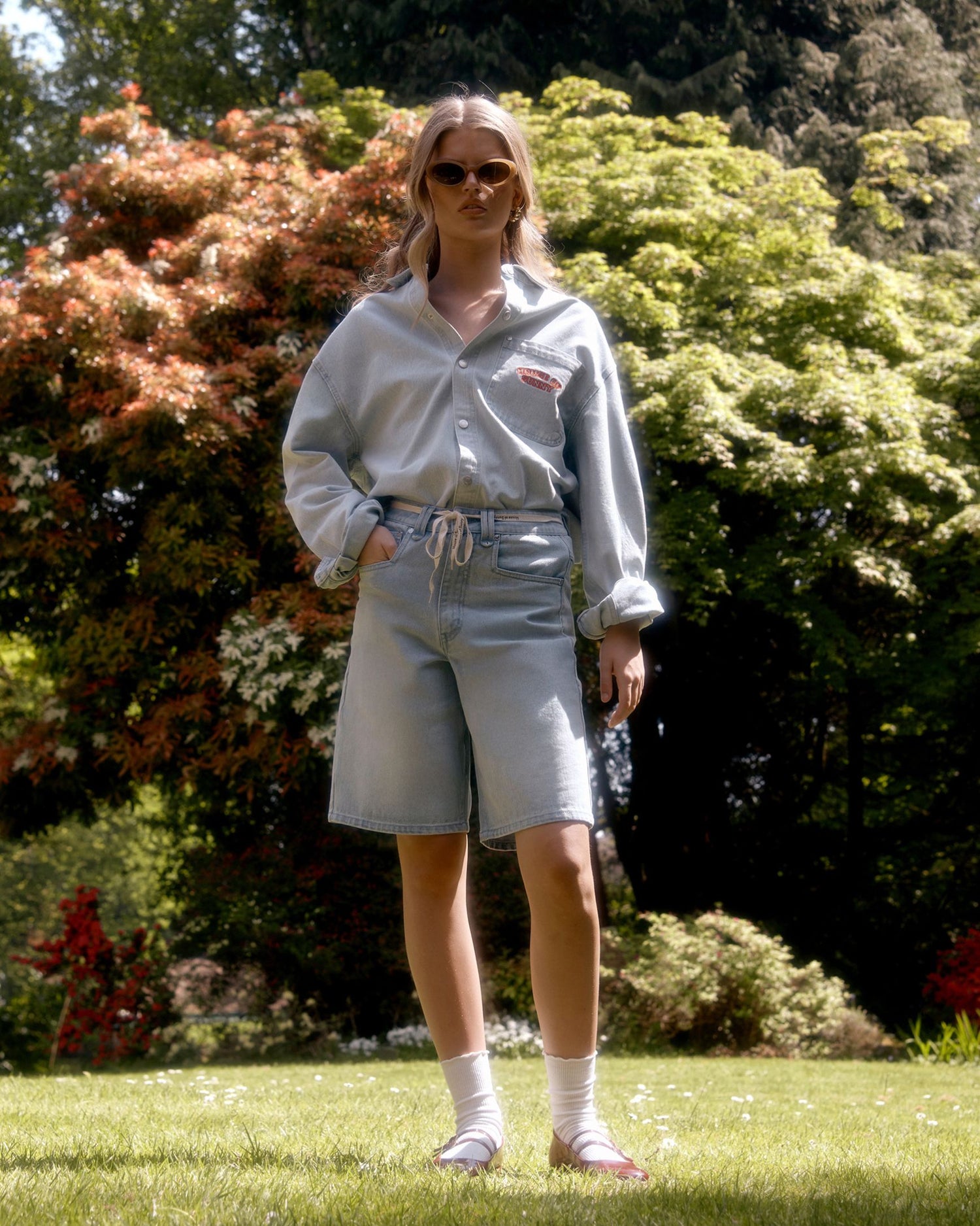 The Sundown Denim Shorts are crafted from soft, brushed cotton denim for that worn-in feel from day one. With a relaxed, oversized fit and wide-leg skate silhouette, they’re made to move with you — whether you’re city strolling or beach bound. Finished with the signature red HoS logo embroidery, these unisex shorts bring laid-back energy to any look. For a more fitted feel, women may prefer to size down.