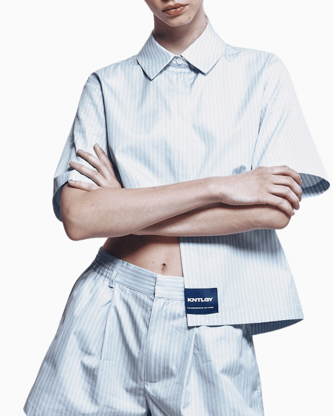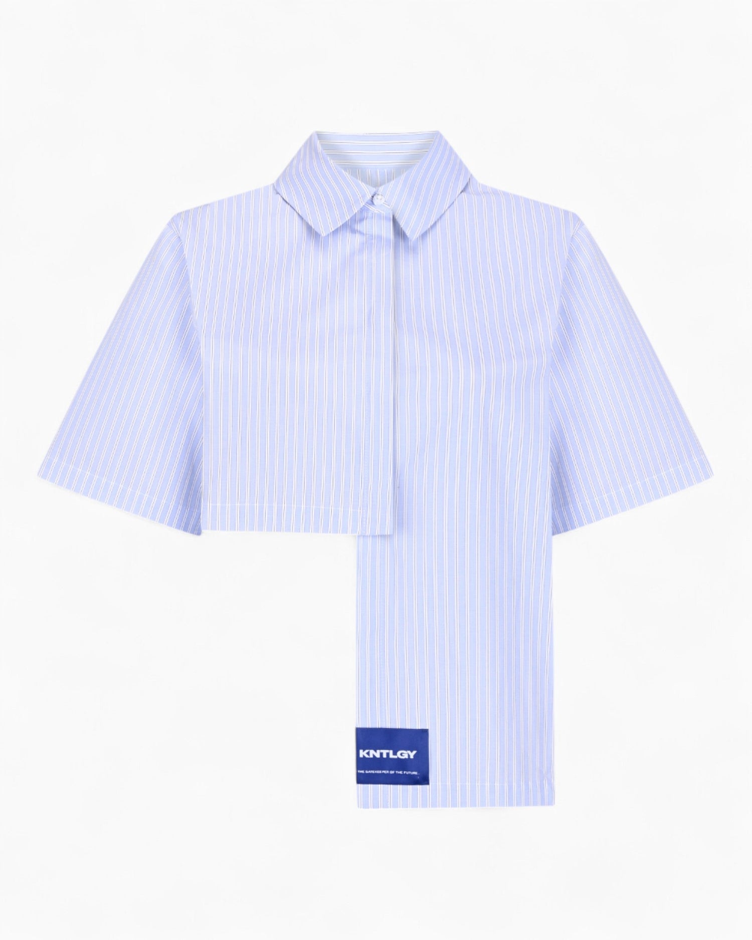 Intersectional Crop Shirt redefines the classic shirt silhouette with its structured collar and asymmetrical cut. Standing out with its bold design, this statement piece adds a touch of modern elegance—perfect for both everyday wear and special occasions.