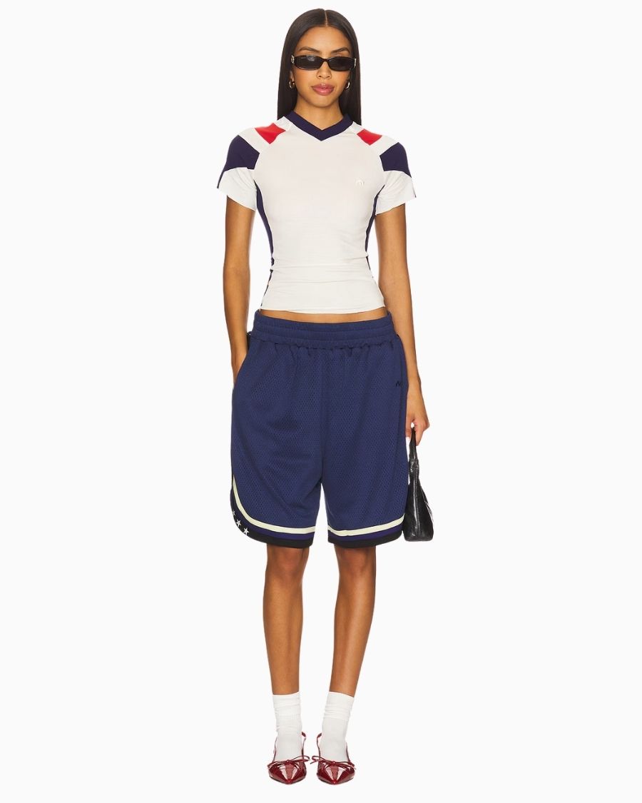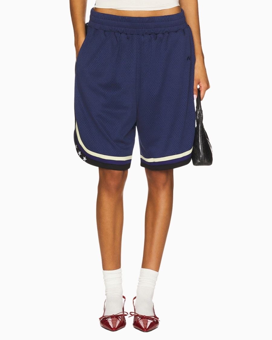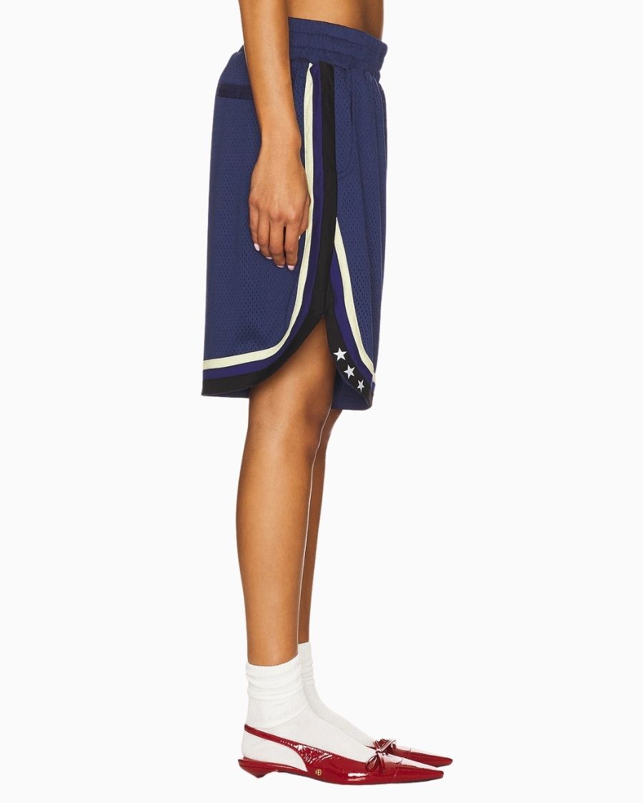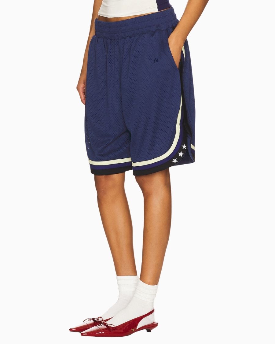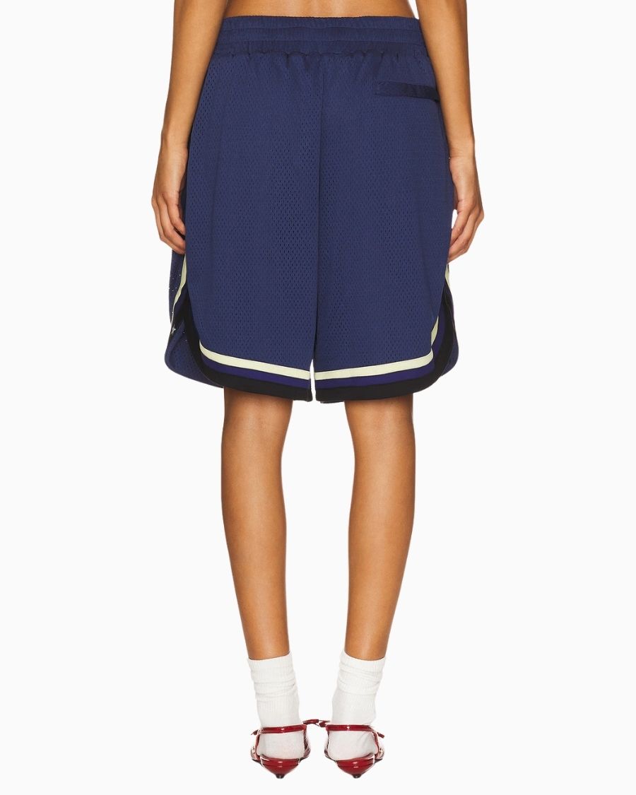Basketball Short – Navy (Women) blends vintage flair with a refined metropolitan style, adding bold character to your summer wardrobe. With its oversized and baggy fit, it offers a relaxed yet stylish silhouette that strikes the perfect balance between comfort and street-ready fashion. Crafted from lightweight, breathable 100% polyester jersey, it keeps you cool all day long. Functional pockets make it an ideal choice for everyday wear.