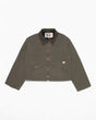 The Molly Duck Canvas Women's Jacket stands out with its cropped, boxy fit and functional design. Created to provide warmth, the jacket features a fully quilted lining throughout the interior. The faded fir-green tone of its double-layered canvas is complemented by stainless steel zippers, copper buttons, and tone-on-tone stitching, offering a durable yet refined finish.