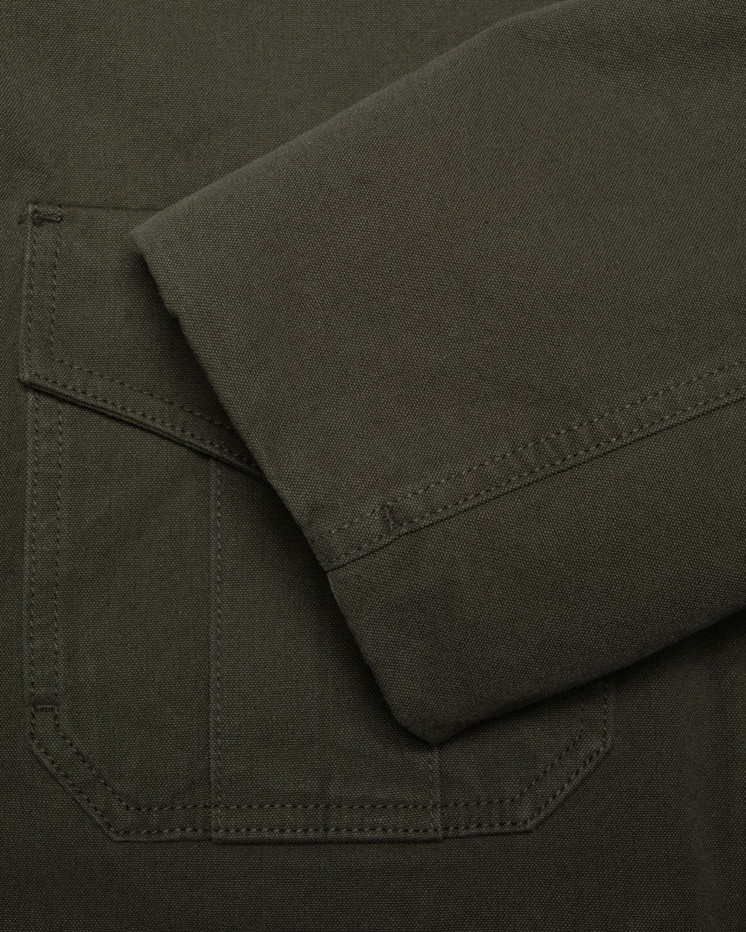 The dual-function patch pockets on the front are both practical and stylish — featuring a top flap opening for classic use and side openings to keep your hands warm. The collar, crafted from the same fabric in a slightly darker shade, adds a subtle contrast inspired by traditional workwear aesthetics.