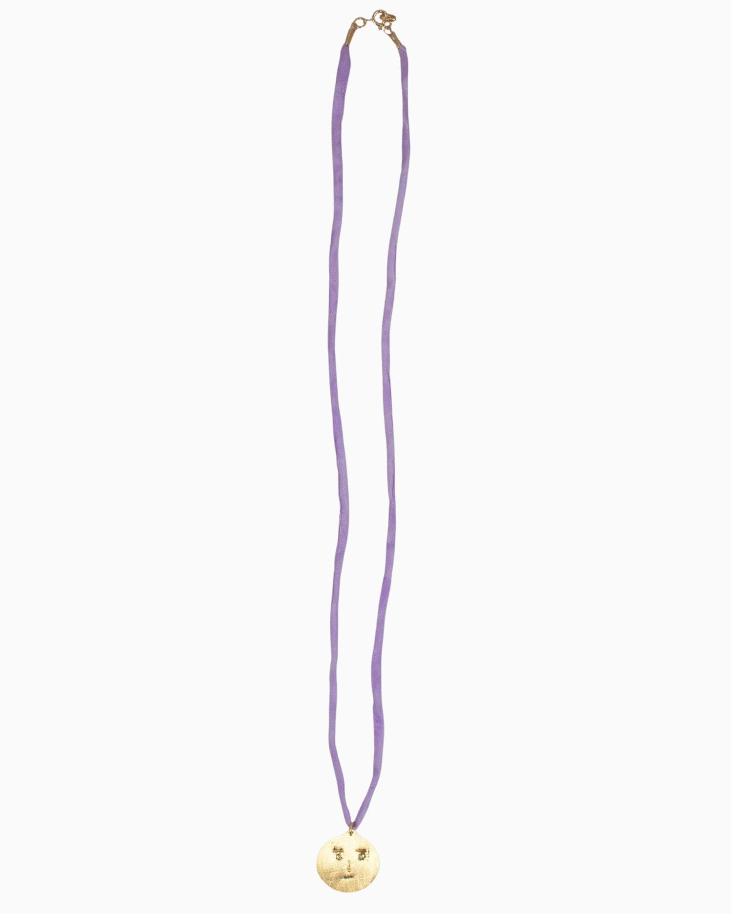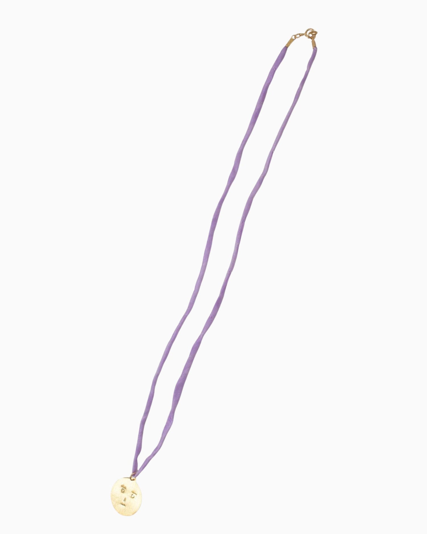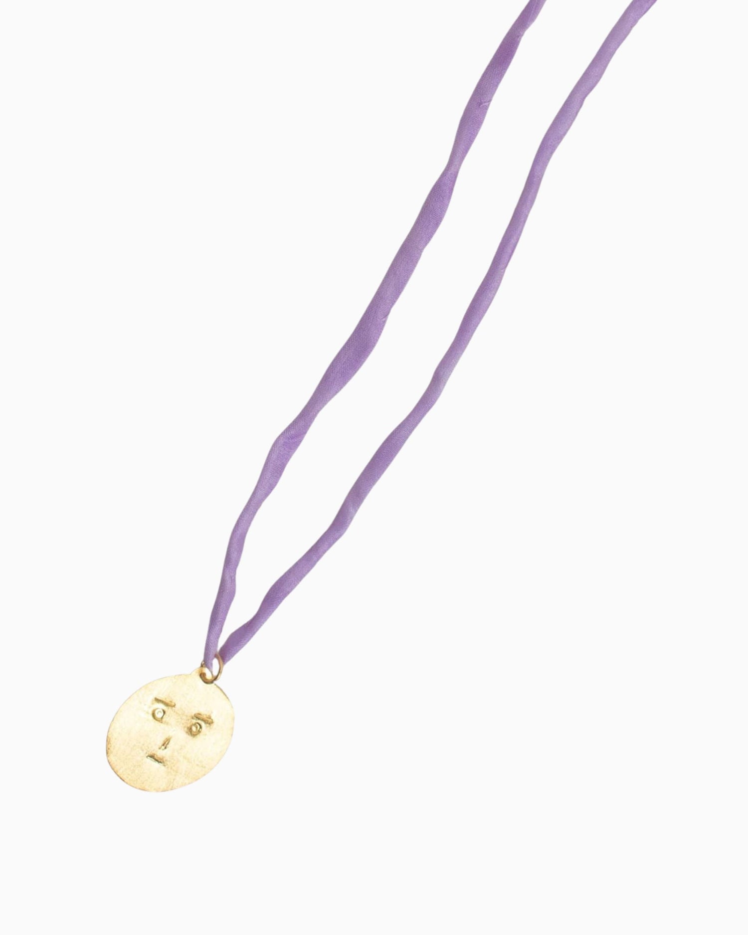 This distinctive necklace combines gold-plated silver with a luxurious silk cord measuring 52 cm in length. The hand-painted charm measures approximately 2.5×2.5 cm*, adding a touch of artistry to every piece.