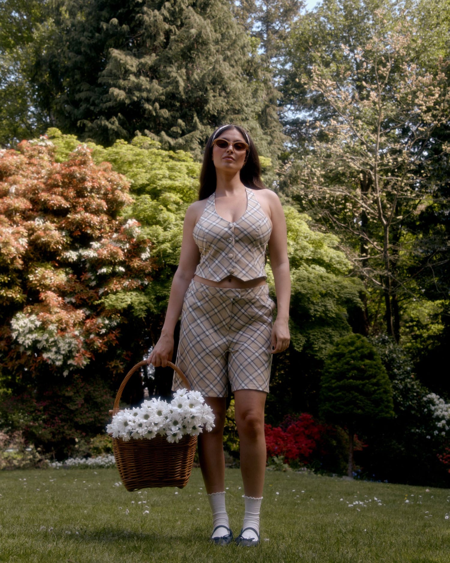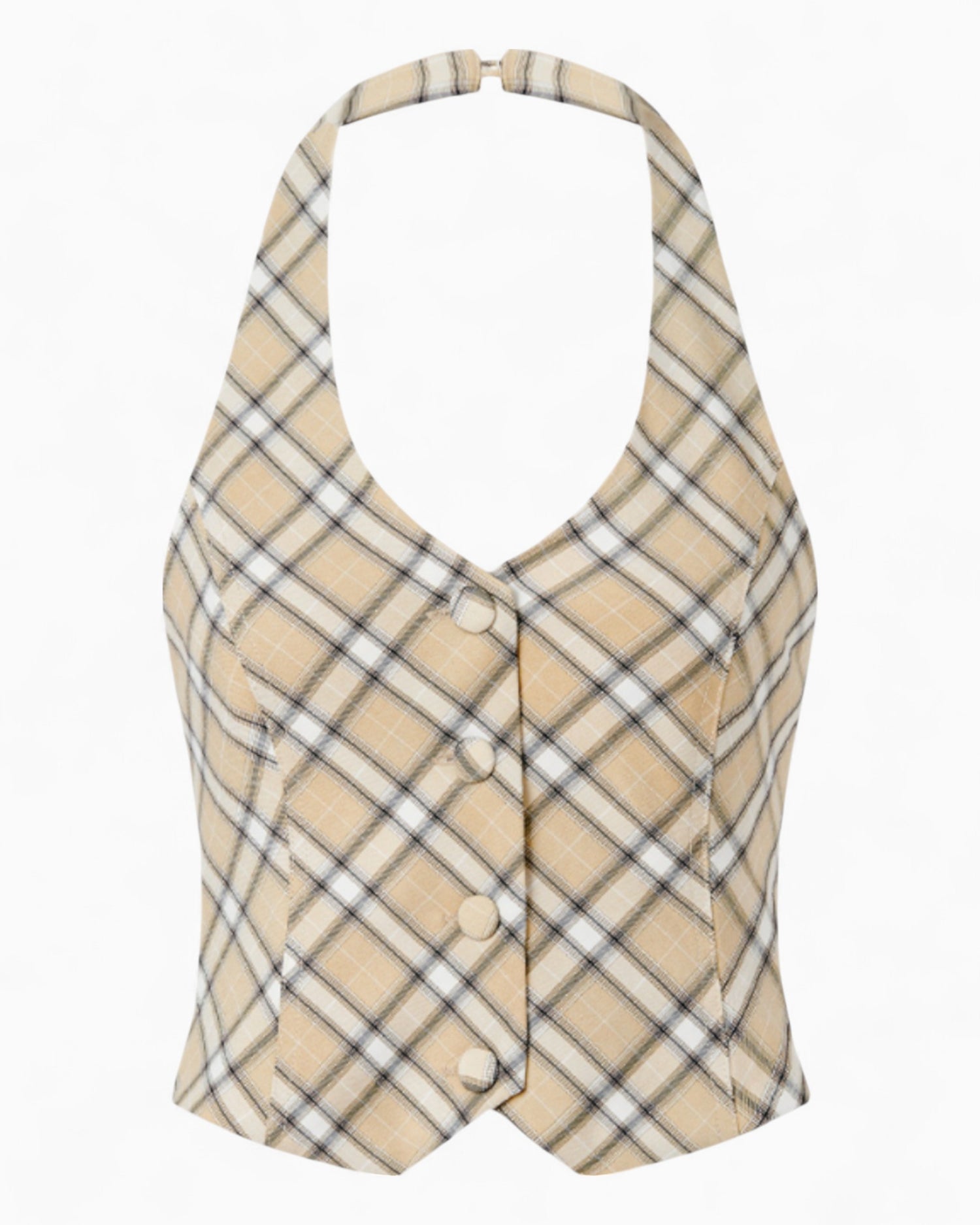 Tailored from a thick, structured canvas and finished with a custom checkered print, Sloane Check Women's Waistcoat brings a modern edge to classic design. The halter neck with button closure adds a bold touch, while the adjustable back ties ensure a flattering, customizable fit. Designed in a standard fit to be worn true to size.