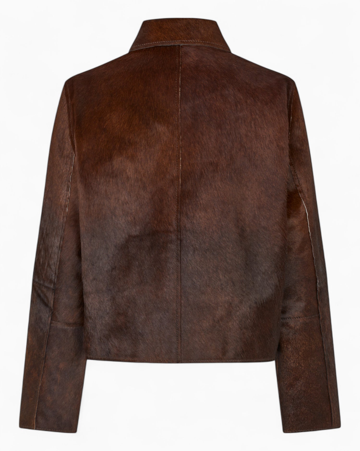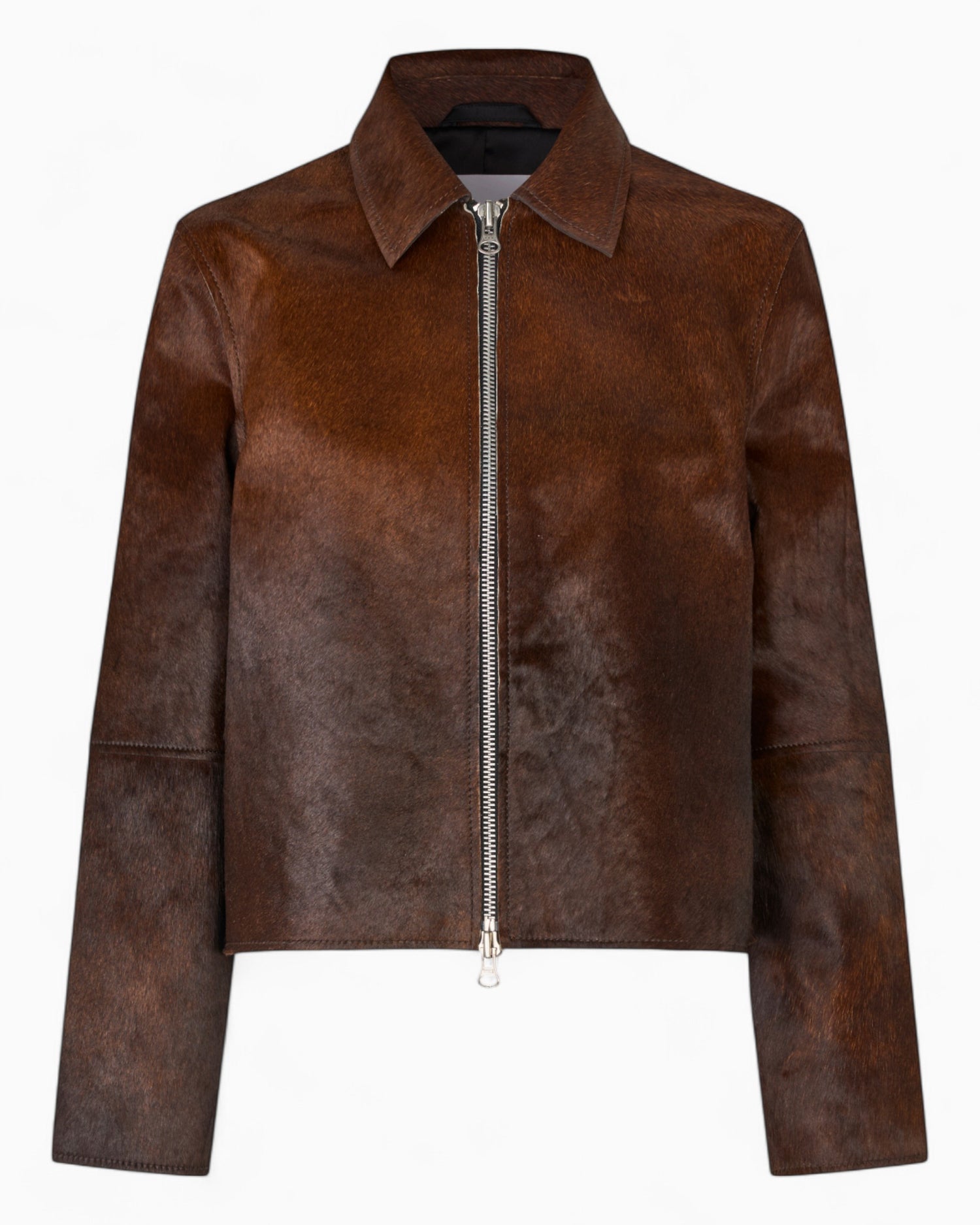 Designed in a regular fit with vertical shoulder details, the Salylo Leather Jacket is crafted from cowhide and cow hair, combining elegance with comfort. Its two-way front zipper closure offers both practicality and a modern edge, while the side slit pockets add convenience. Fully lined for extra comfort, this piece is made from 100% cowhide, ensuring each jacket has a unique pattern. The leathers used come from LWG-certified suppliers, supporting responsible environmental practices in the leather supply chain.