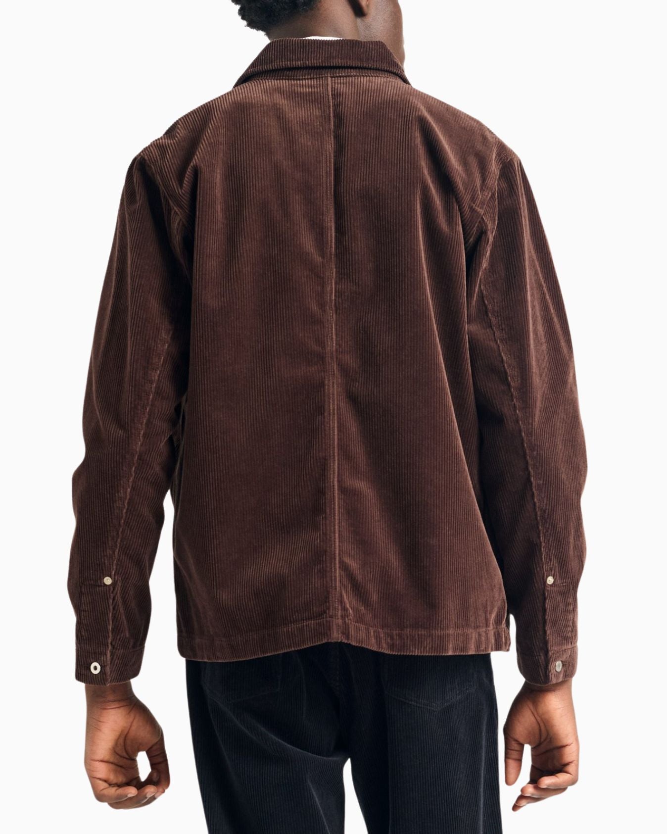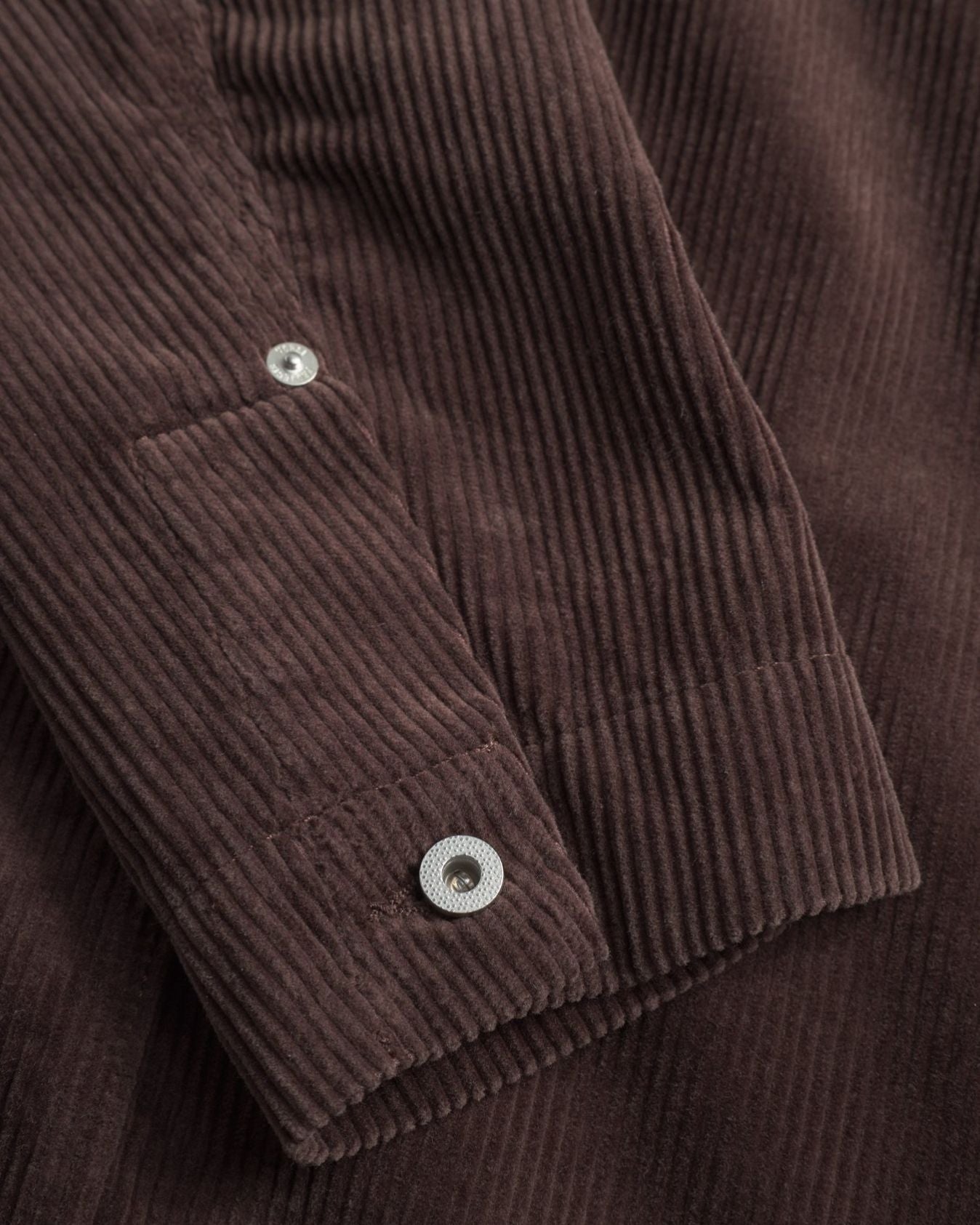A regular-fit overshirt crafted from premium Italian 8-wale corduroy. Designed with a straight, boxy cut, it works effortlessly as both an overshirt and a lightweight jacket. Detailed with heavy topstitching, three front patch pockets, an internal pocket, rivet-reinforced cuffs, and branded metal shank buttons for durability and character.
