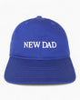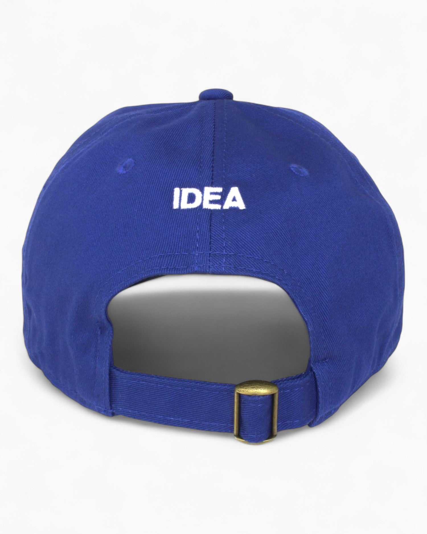 A classic unstructured six-panel hat made from 100% organic cotton in organic blue. Features NEW DAD embroidered on the front and IDEA on the back.