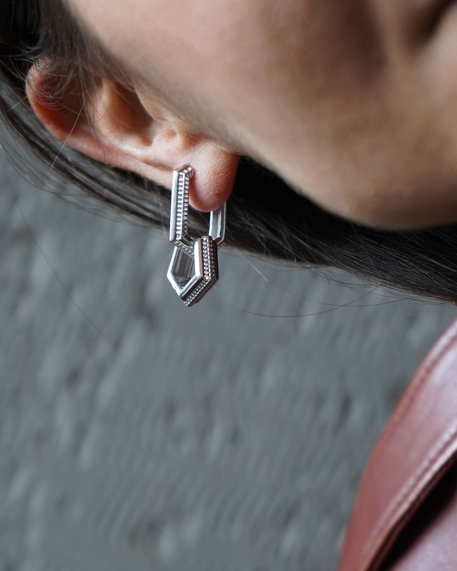 Where modern lines meet classic sparkle — the Trilux Earring is designed for those who want to add a sophisticated edge to their style. The bold energy of its triangular form creates a minimalist yet eye-catching silhouette. Sold as a single piece, Trilux is the perfect statement for both everyday looks and special occasions.