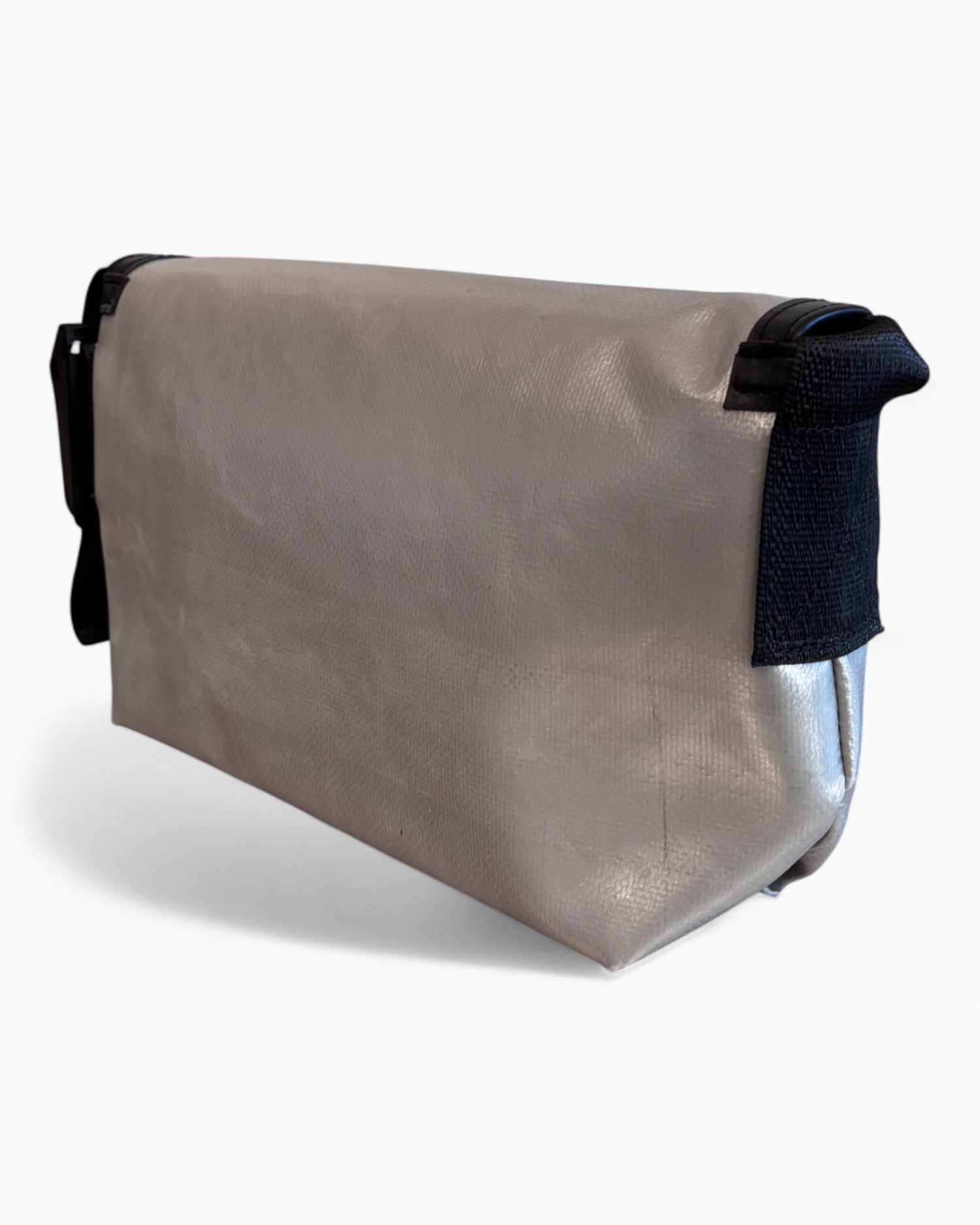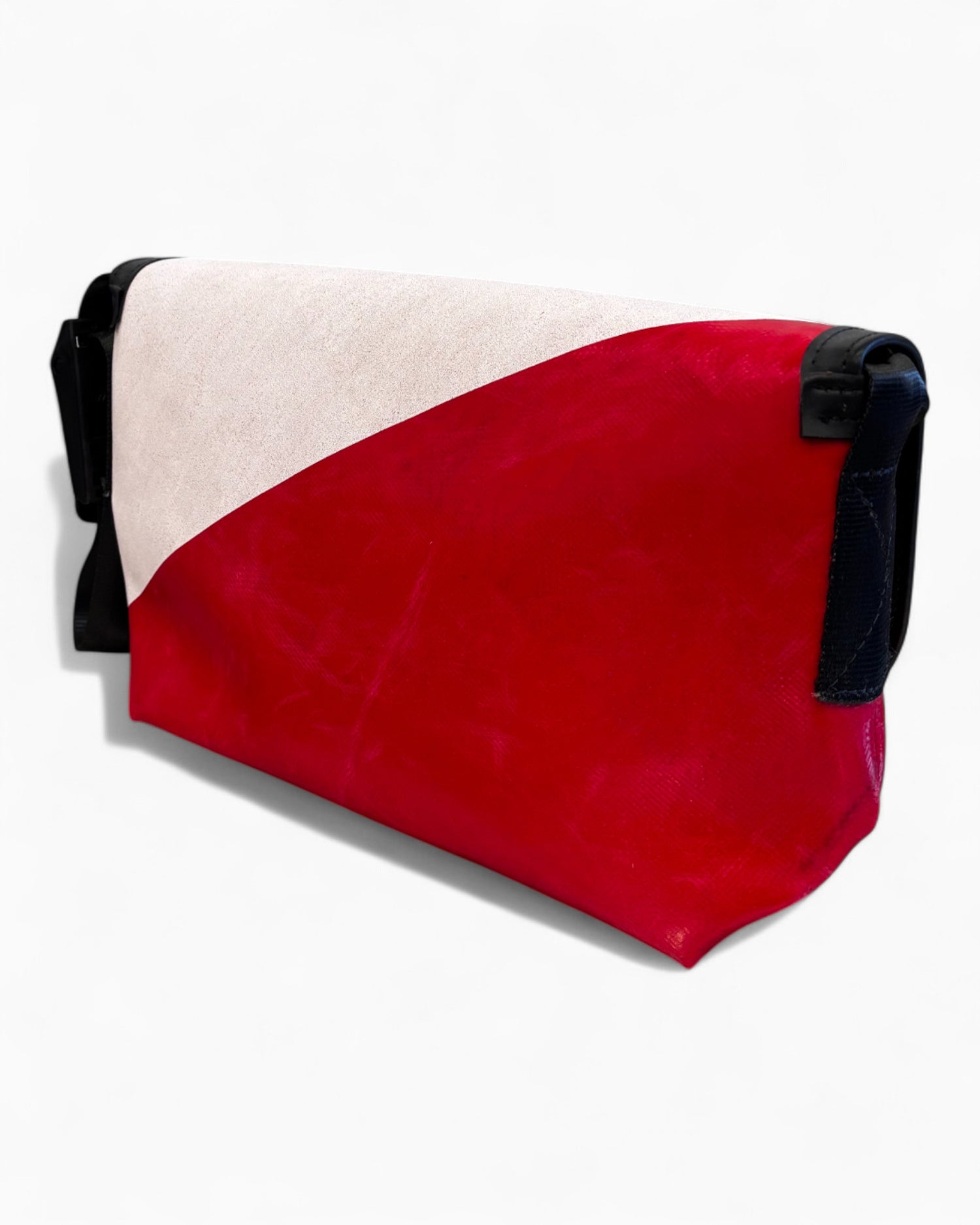 It is made from recycled truck tarpaulins. Each product is unique and personal due to different colors and patterns, ensuring you have a completely unique bag. As unique as snowflakes, but much more practical.