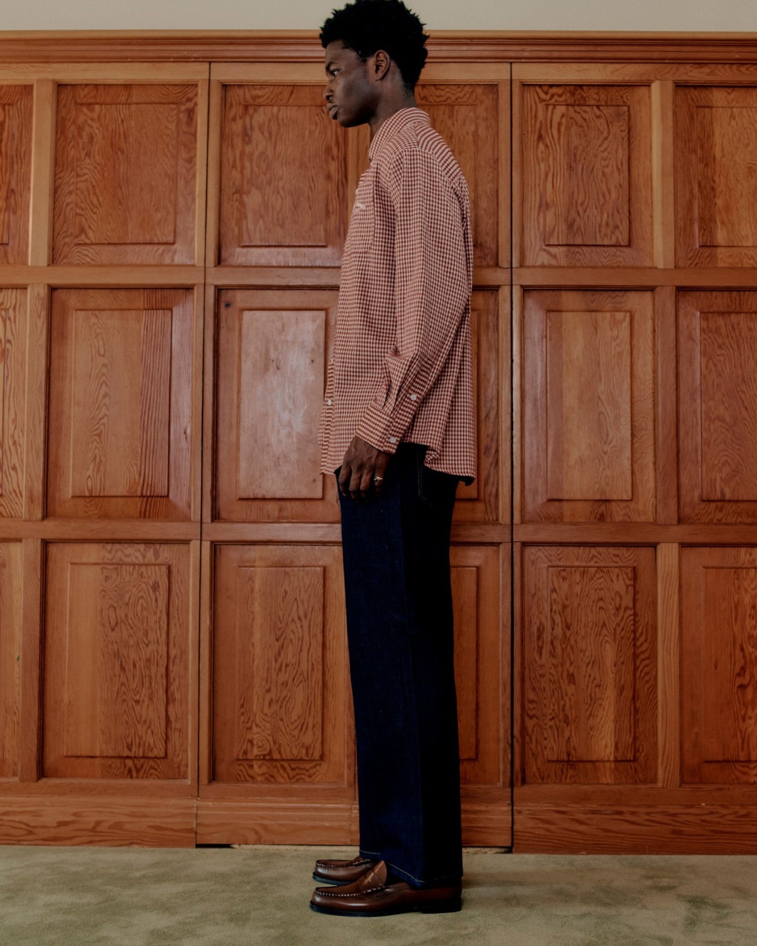 Gingham Shirt reinterprets a classic pattern with a contemporary silhouette. The timeless gingham check is paired with a soft, modern colour palette, while the point collar and clean button-down construction keep the look versatile. Designed with an oversized tailored fit, it blends structured lines with relaxed proportions for an effortless, modern feel.