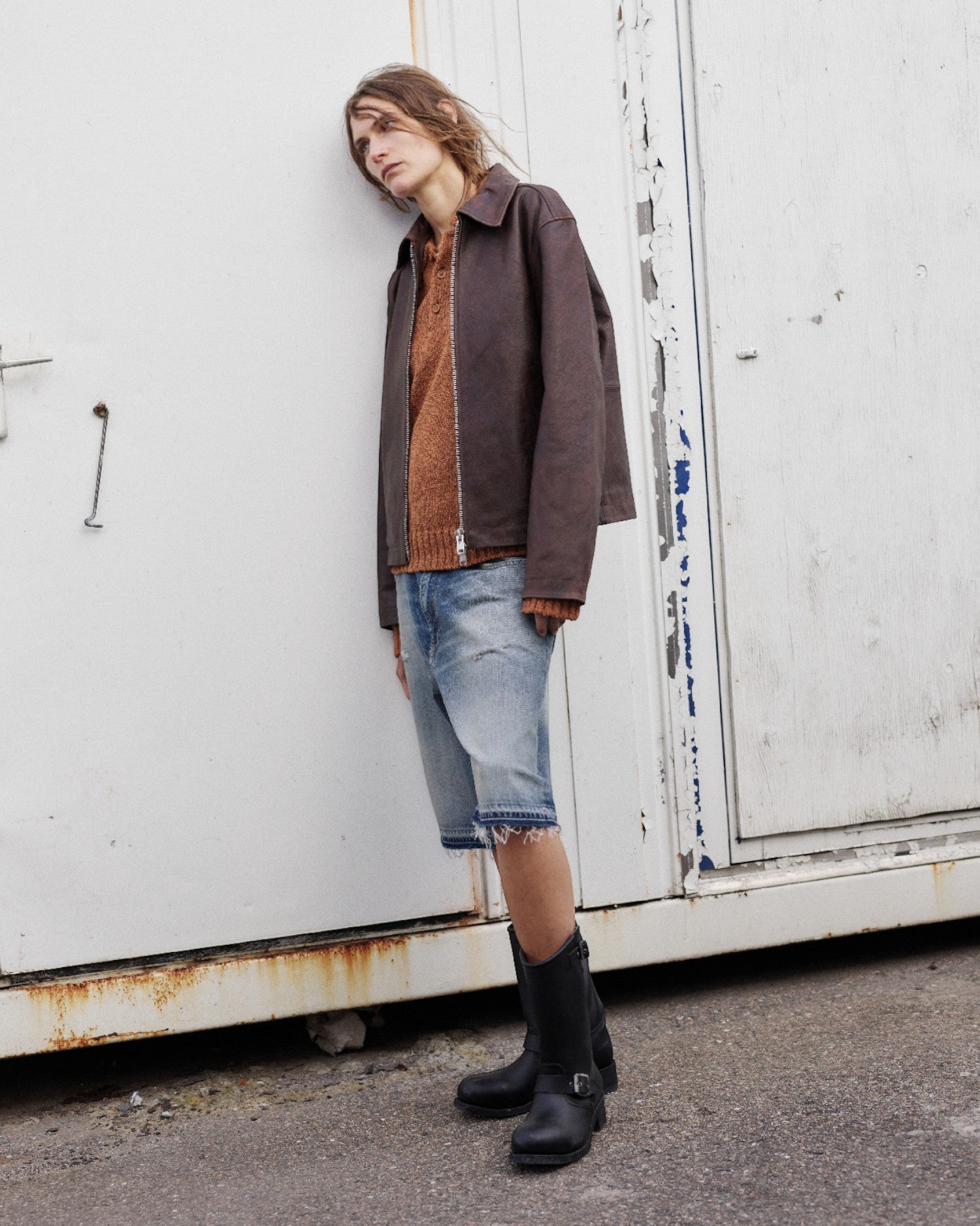 A relaxed interpretation of classic denim. These wide-fit shorts are crafted from a 3/1, 13.5 oz pure indigo denim with a distinctive crosshatch texture, giving the fabric depth and character. Washed to a mid-blue tone with aged tints and vintage-inspired wear effects, the design features subtle distressing and repaired holes for an authentic lived-in look. Finished with recycled metal logo hardware and a leather patch, they combine heritage denim attitude with modern ease.