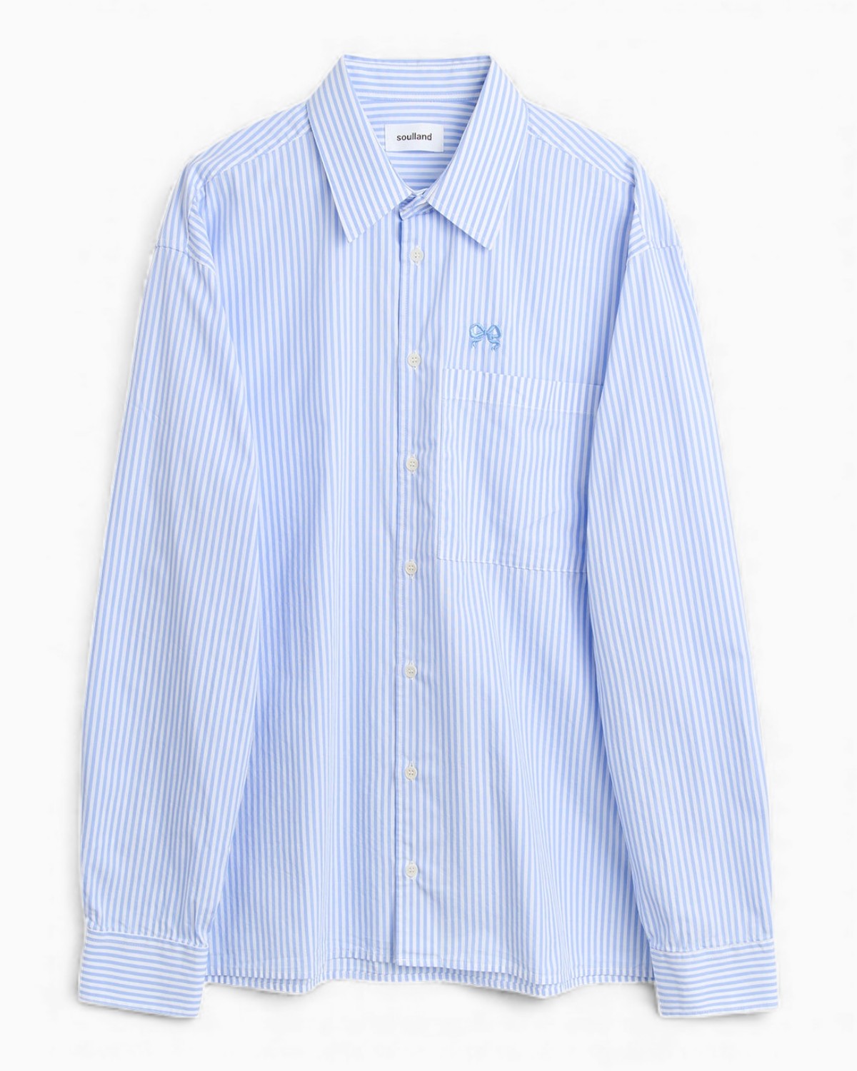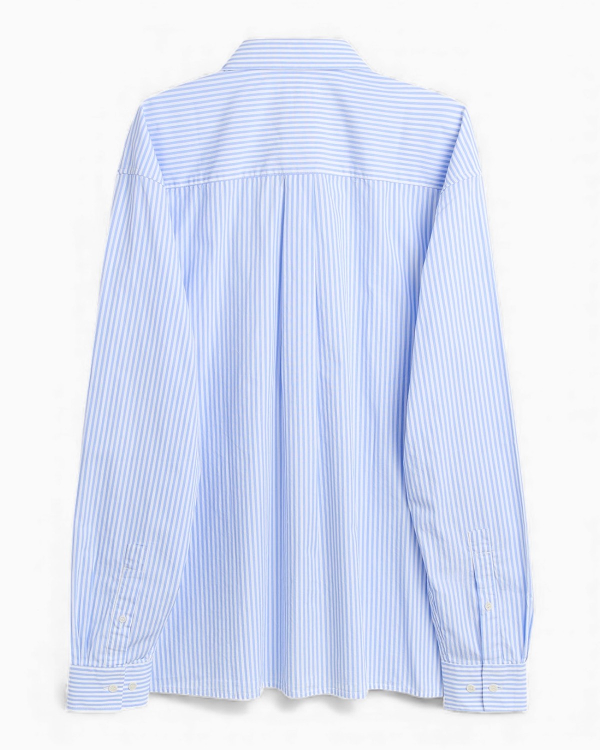 The VIT overshirt features a relaxed fit with a straight hem, buttoned front, and a classic collar. It is crafted from striped cotton poplin and finished with corozo buttons at the front and cuffs. Soft, breathable, and ideal for layering.