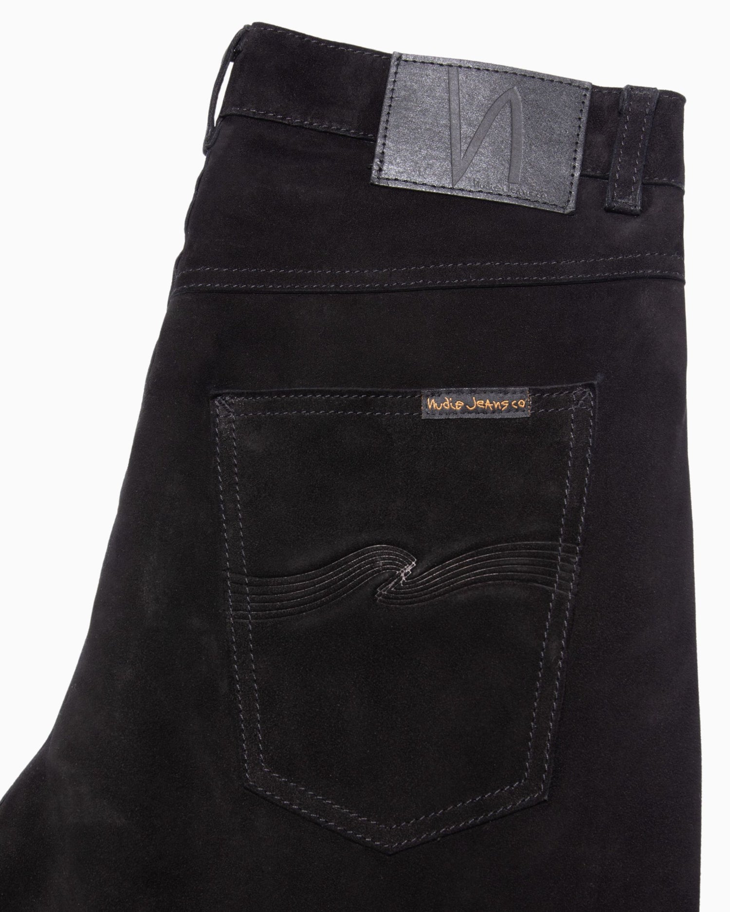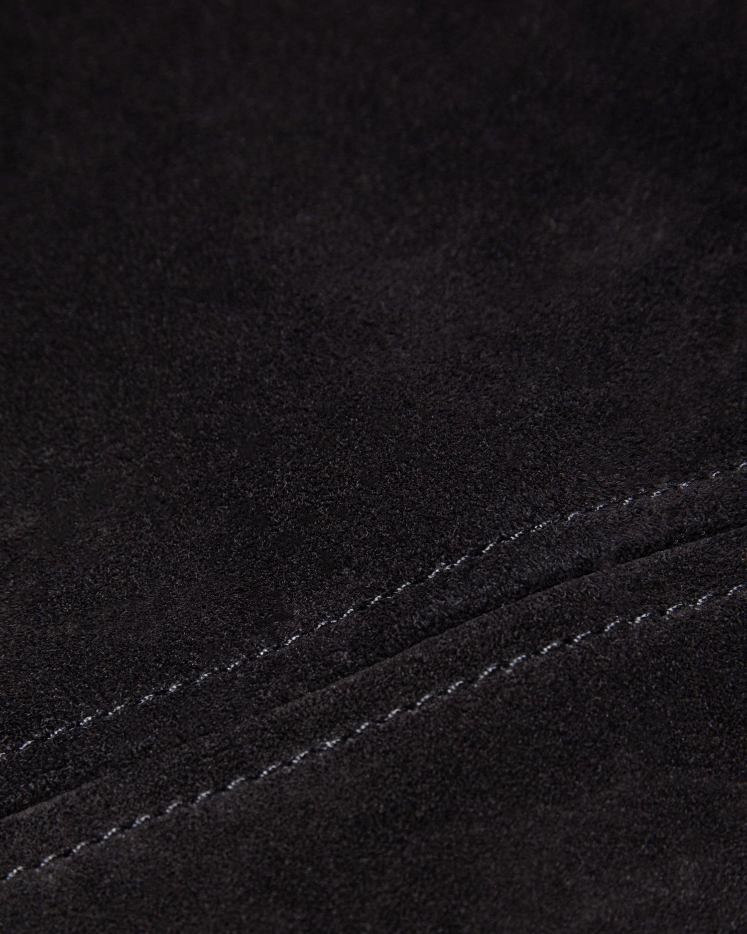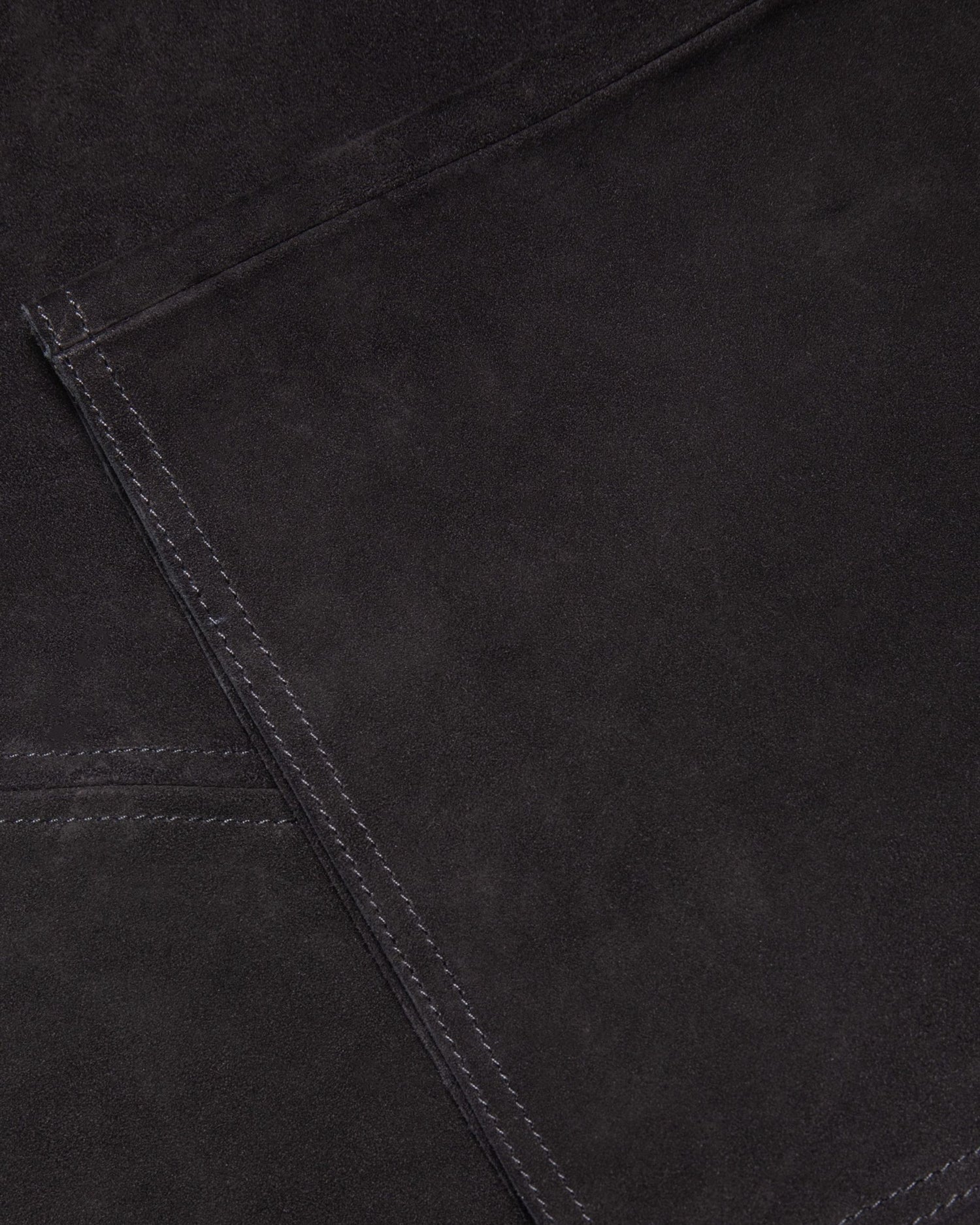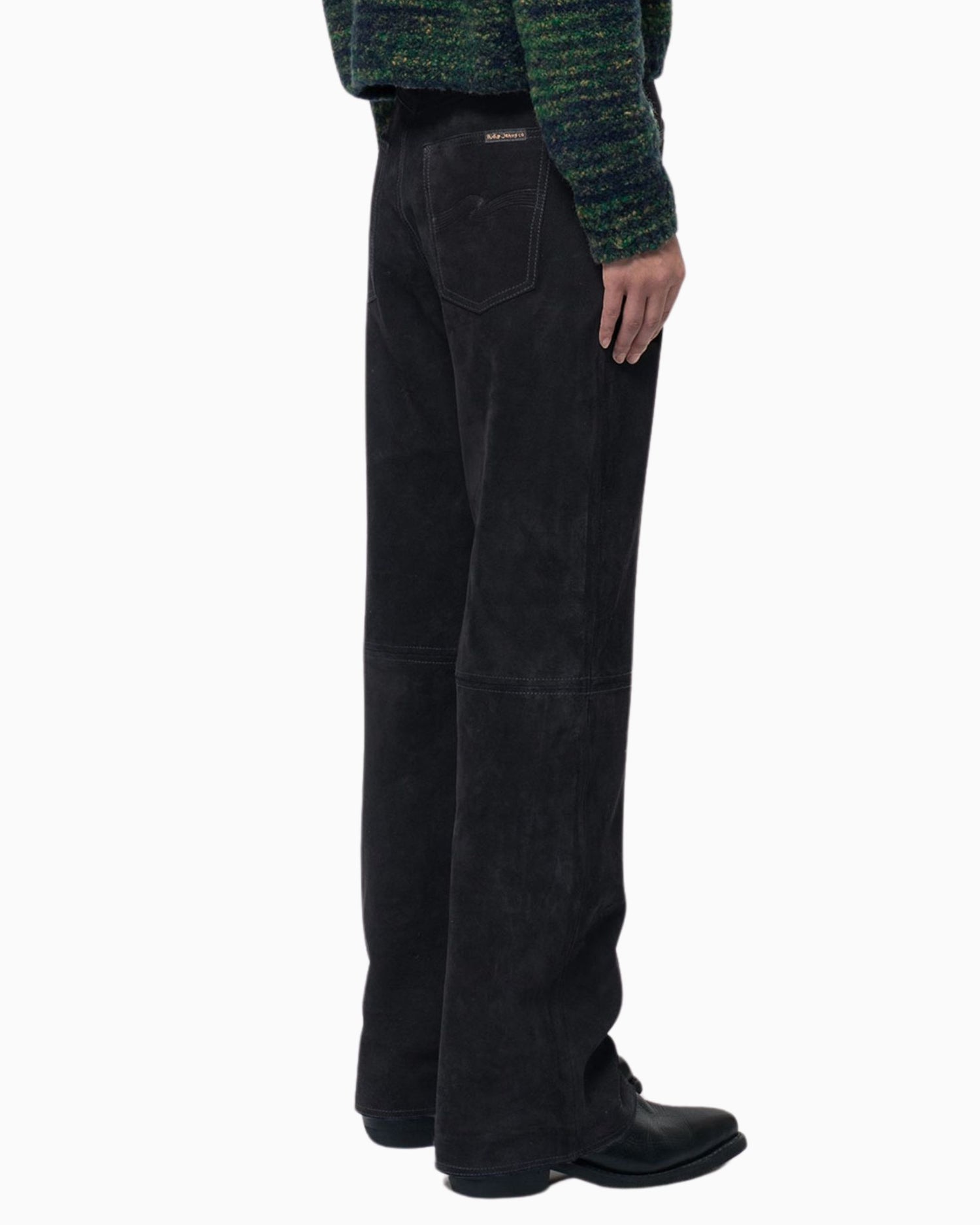 Crafted from luxuriously soft, jet-black goat suede, these pants offer a refined take on a classic wide-leg fit. They share the same cut and details as our denim version, featuring a loose fit, high waist, and wide leg. For added comfort, the pants are lined with recycled polyester from the waist to the knee, woven for slight elasticity.