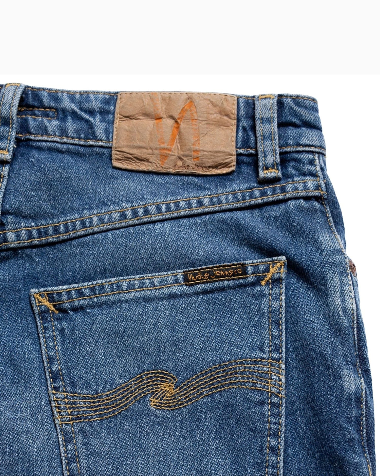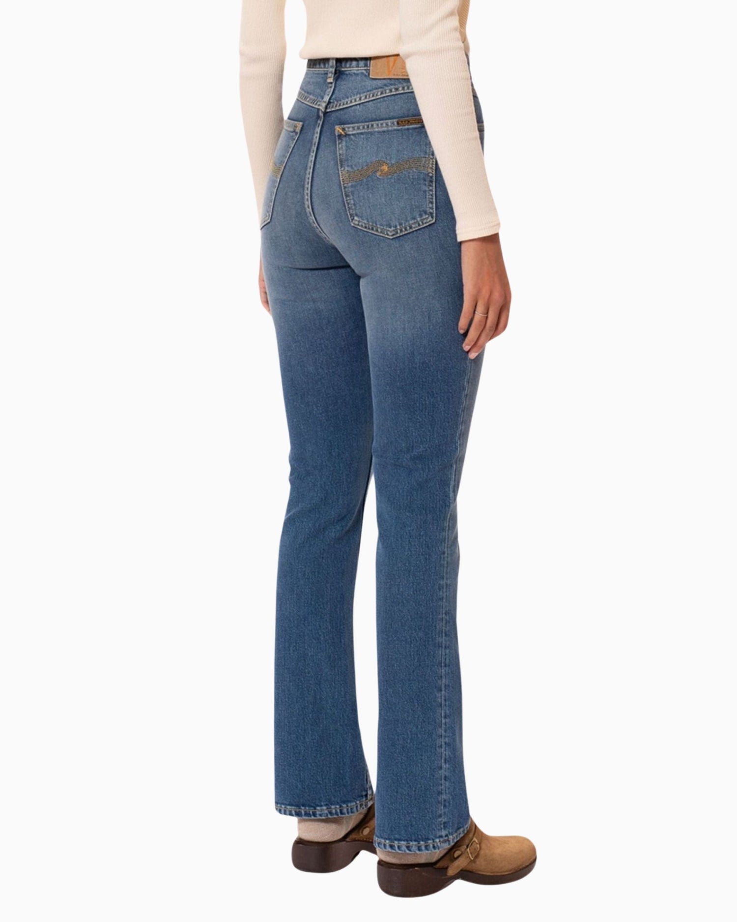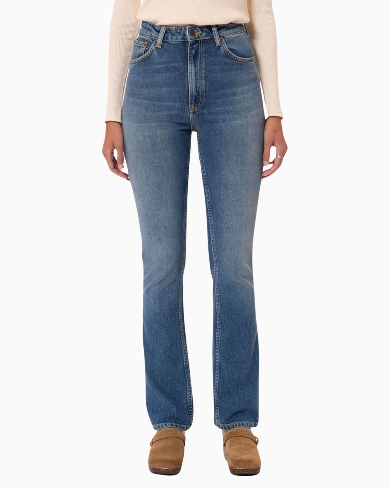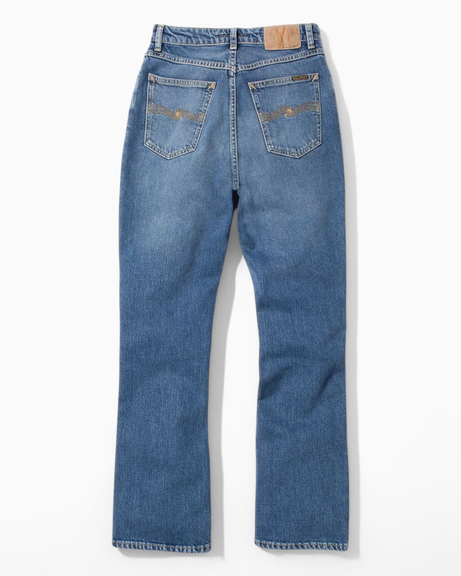 A 70s-inspired fit with a high waist, fitted leg, and a bootcut leg opening. The abraided areas have an authentic worn-in look, and great textural wash effects in the untreated areas. Made with comfort stretch denim for a comfortable fit with that rigid denim feel.