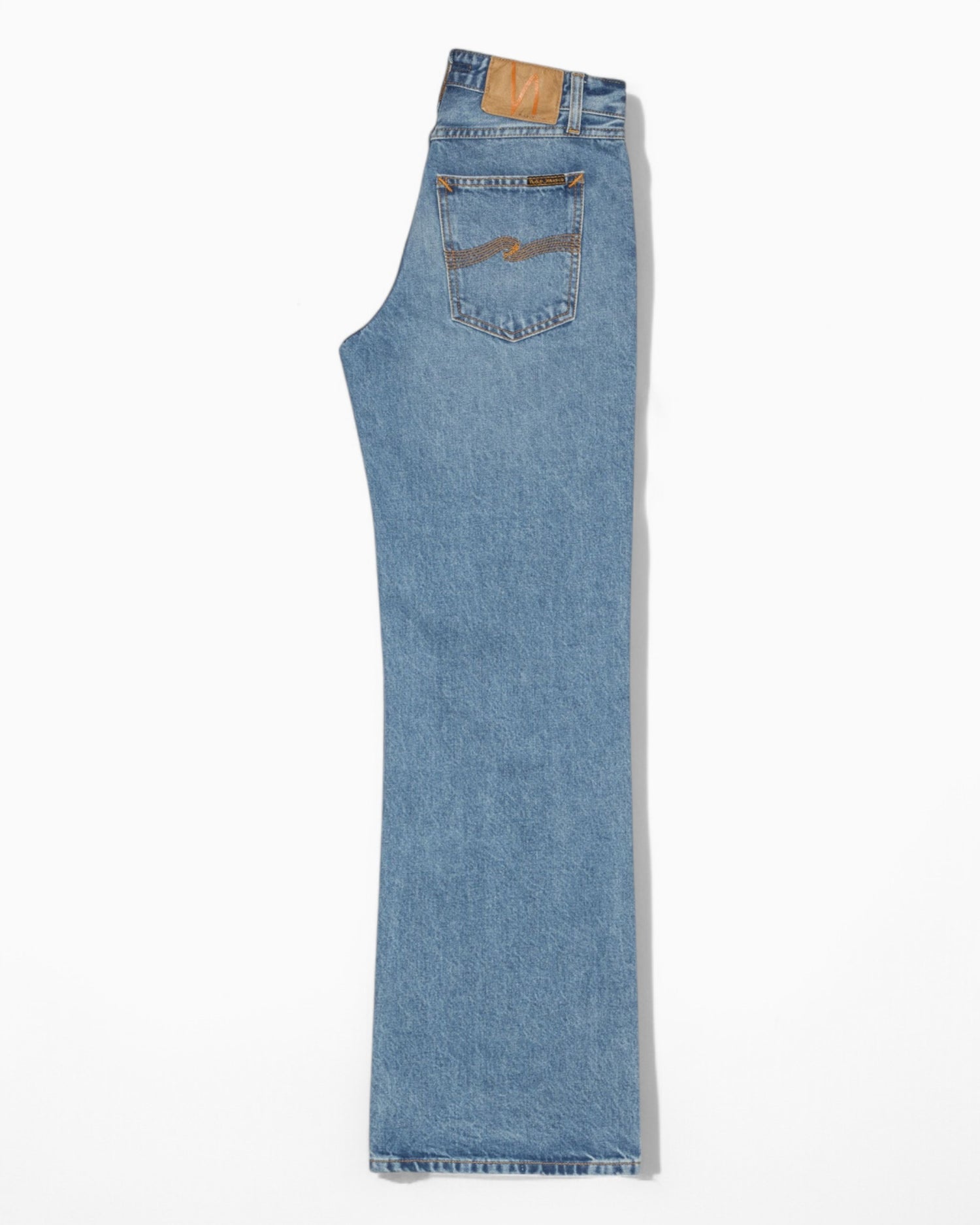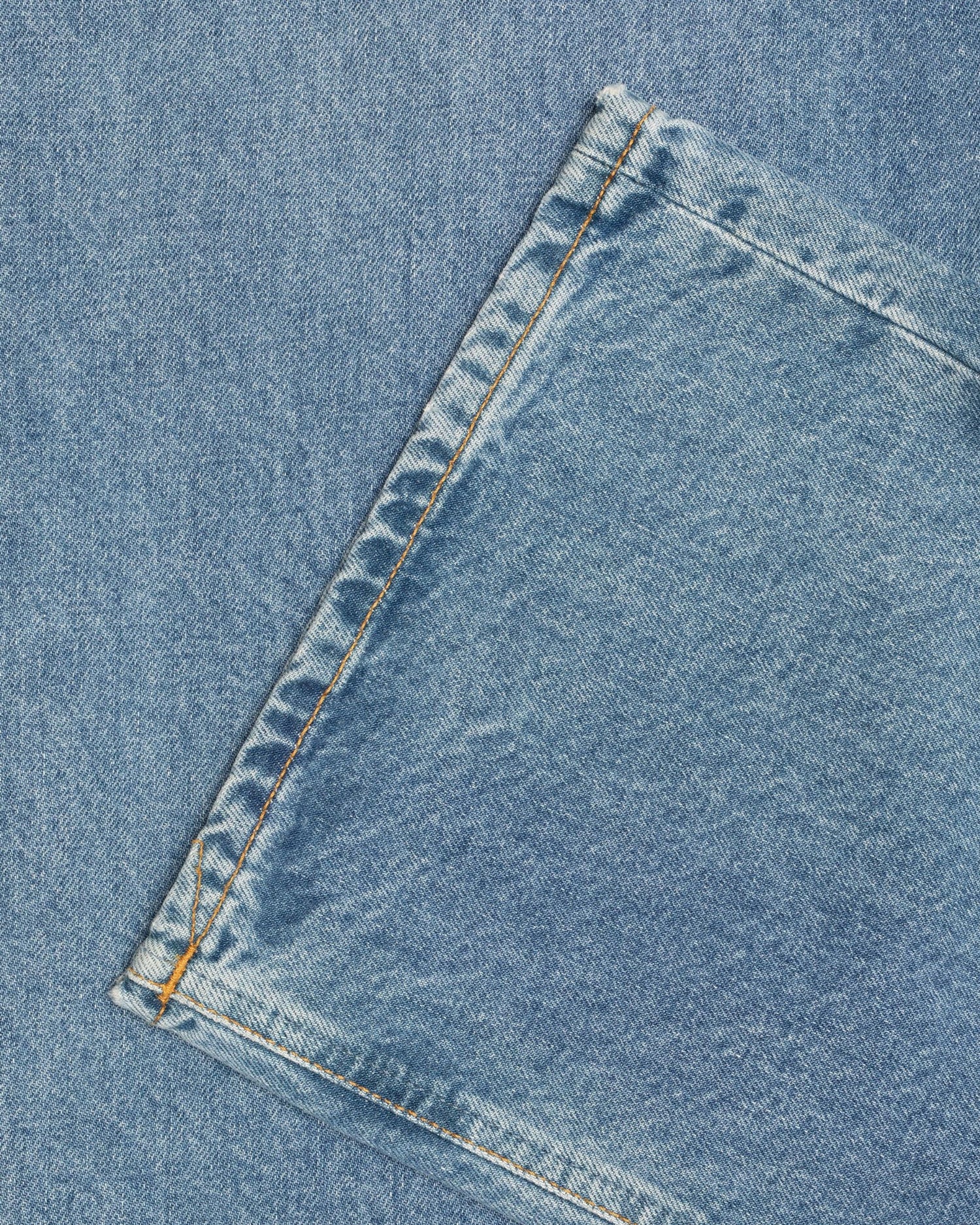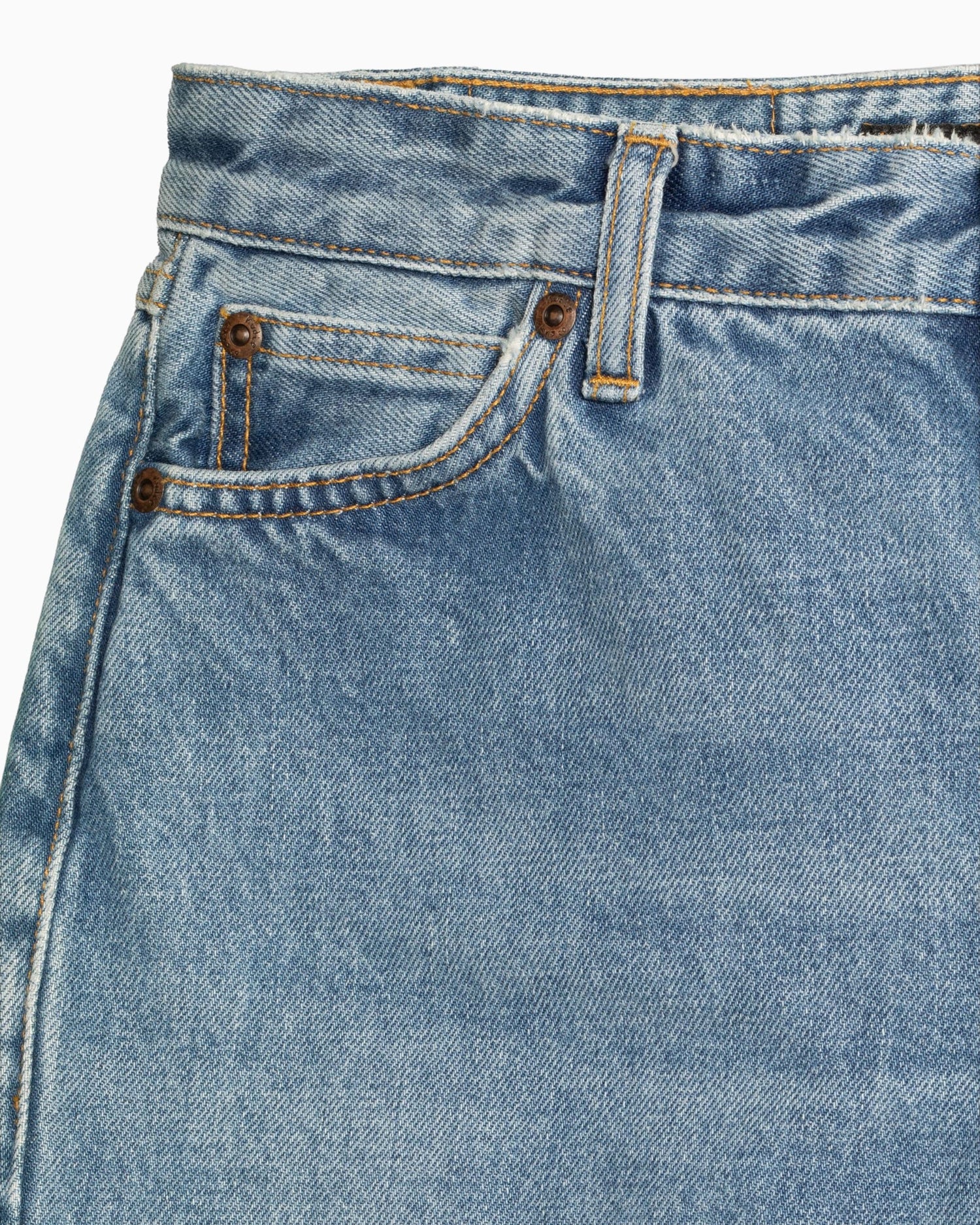 These jeans offer a loose, low-waist fit with a wide leg, finished in a light blue wash for an authentic worn-in look. Crafted from a newly favored 13.3 oz. rigid denim, they strike the perfect balance of texture and depth. Short, defined slubs create subtle streakiness, while crosshatch and marble effects add a true vintage feel. With a dense weave and robust hand, they embody classic denim craftsmanship.