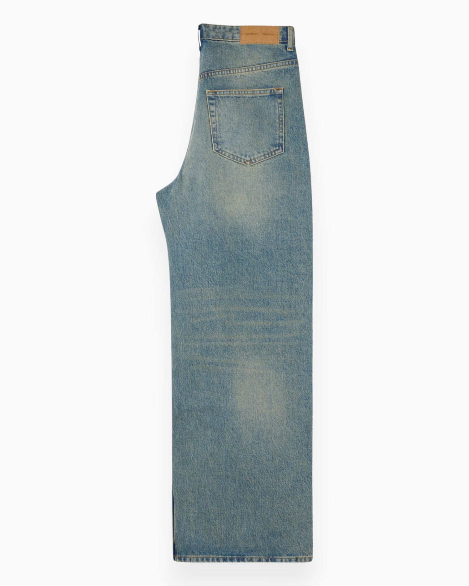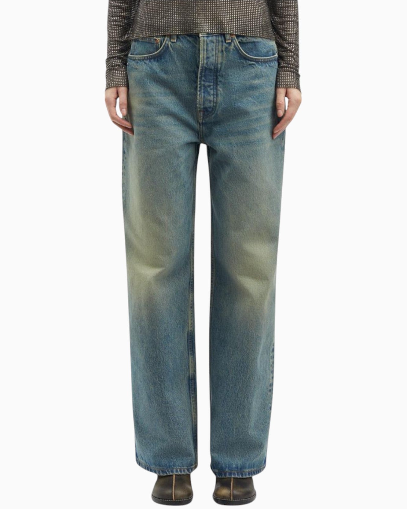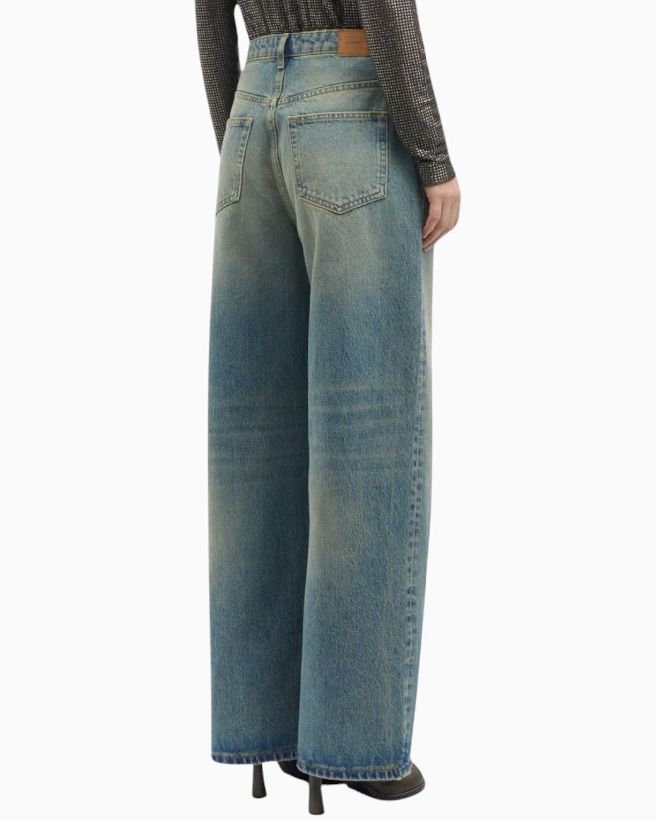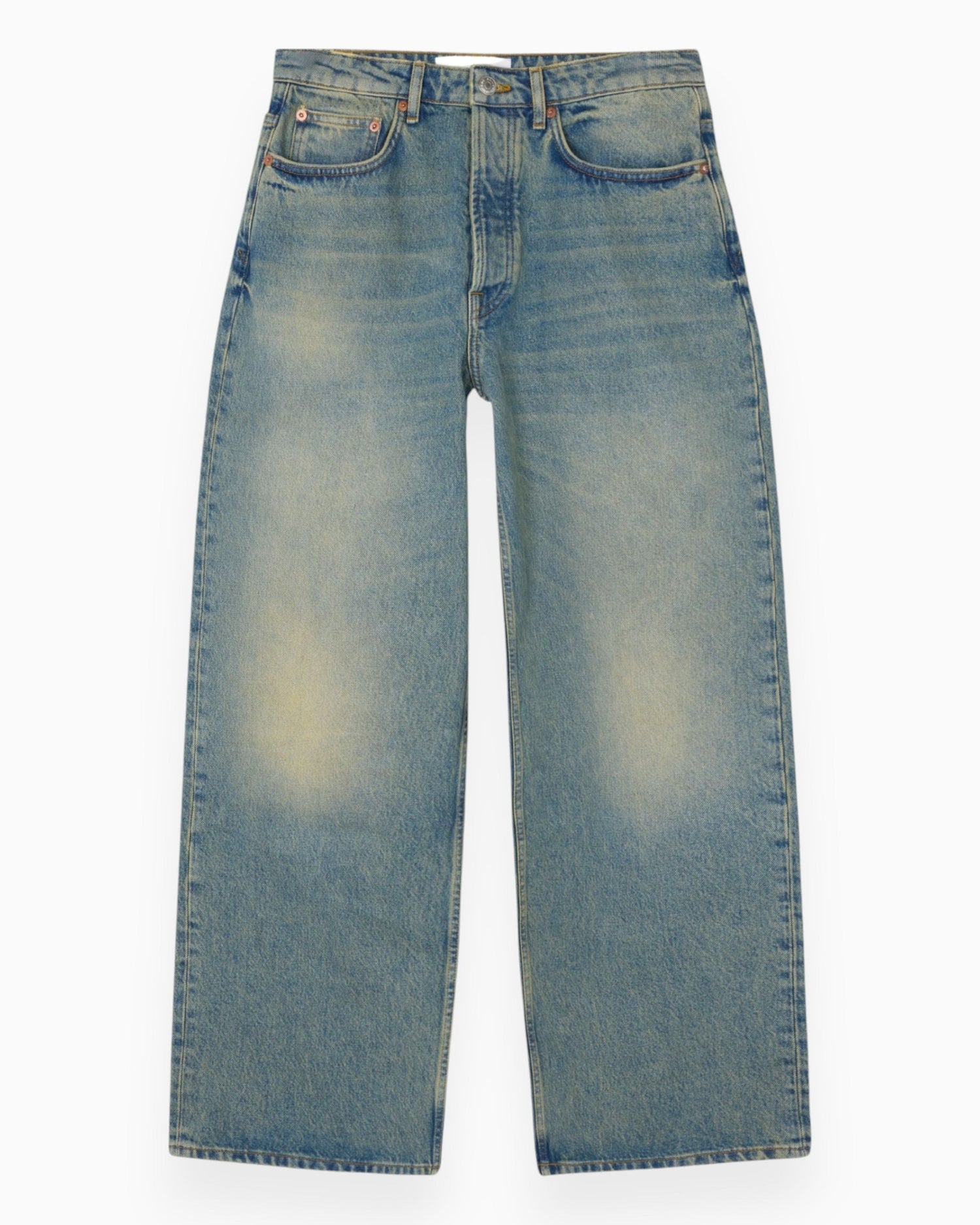 Low-waist jeans with a loose fit and wide leg. Button and zipper closure at the fly. Five-pocket style. Belt loops. Main material made from 100% organic cotton.
