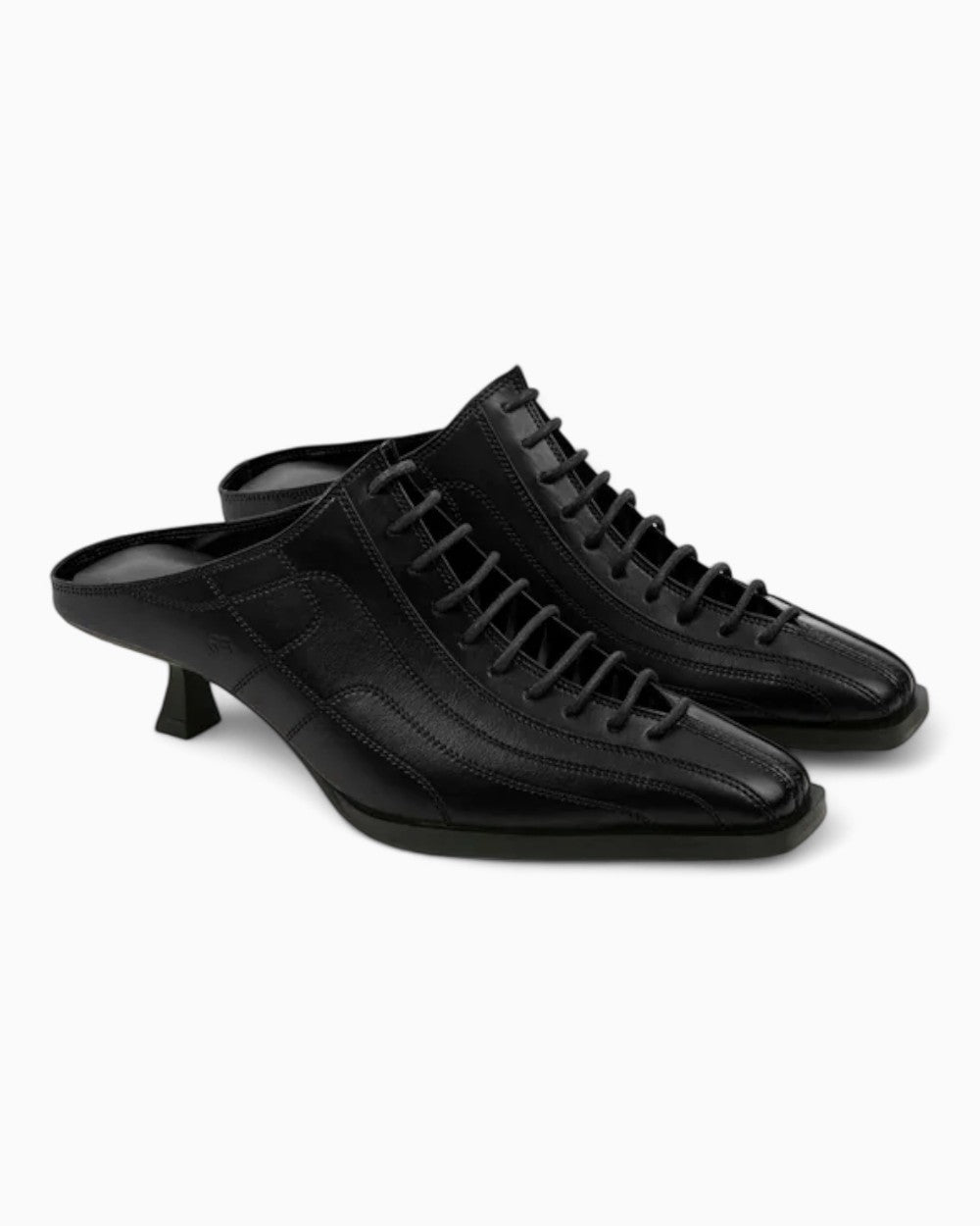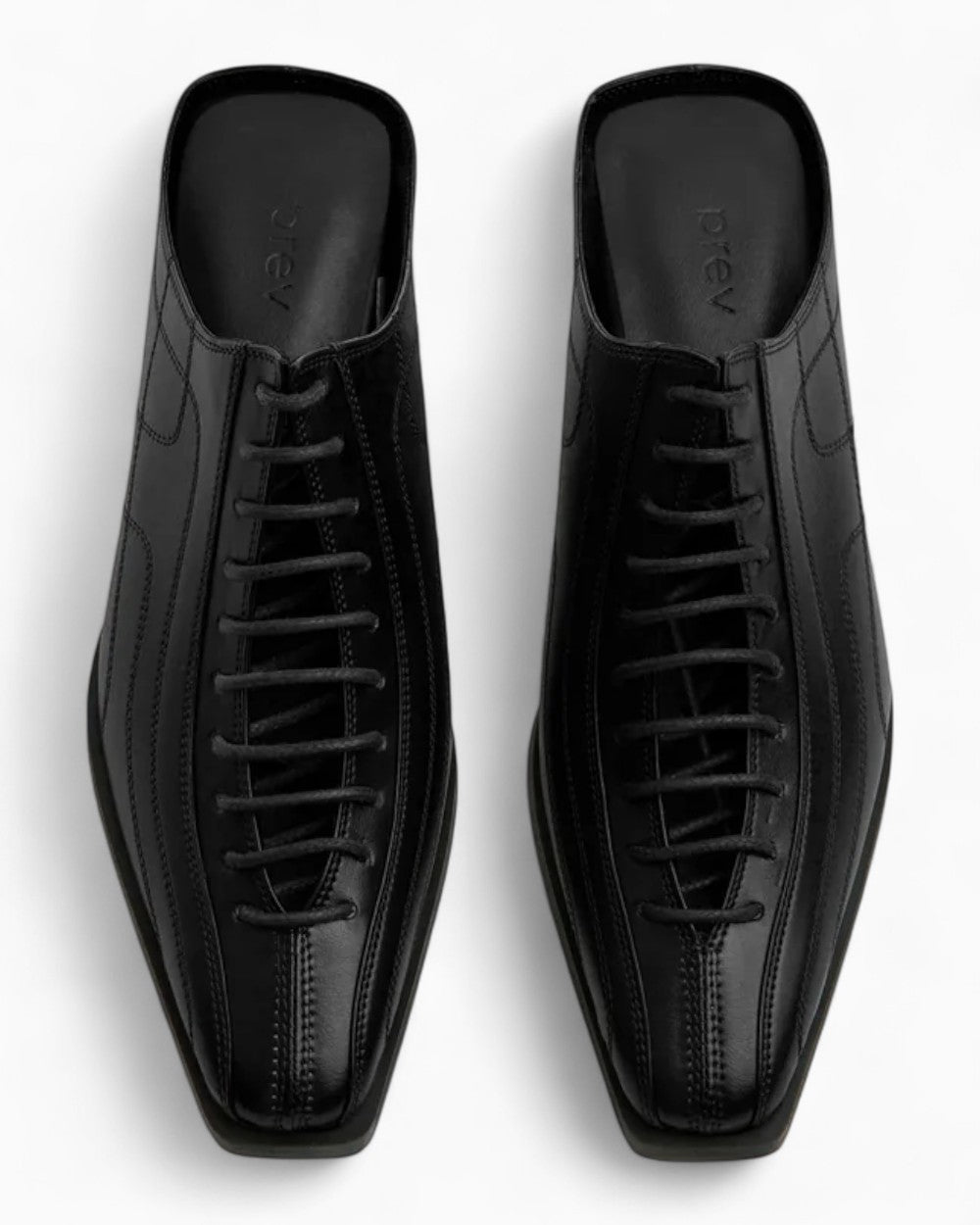 Combining bold elegance with a strong stance, this model stands out with its angular sole, elongated toe shape, and refined stitching details. From top to bottom, high-quality cotton laces and geometric accents reflect Prev’s signature approach — delicate yet powerful.