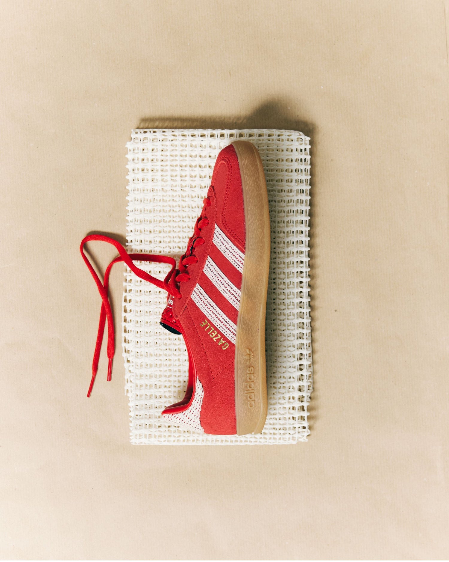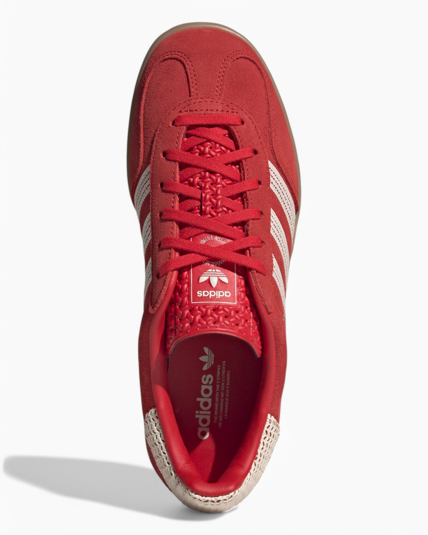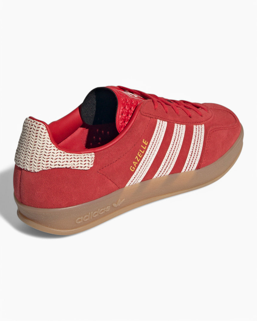 One of adidas Originals' classic T-toe sneakers made in suede with crocheted accents. Lace up a piece of adidas Originals history with these Gazelle Indoor sneakers. First made as an indoor training alternative to the standard Gazelle, this iconic silhouette has been reimagined for everyday life. A premium suede upper provides a luxurious feel with plenty of structure, and it's accented by crocheted 3-Stripes and heel tab for unexpected flair. The gum rubber outsole includes a translucent sidewall wrap with sharply molded branding and Trefoil-shaped traction underfoot. Tap into the storied sport roots of adidas in these low-profile sneakers that look good with jeans, joggers, track pants and more.