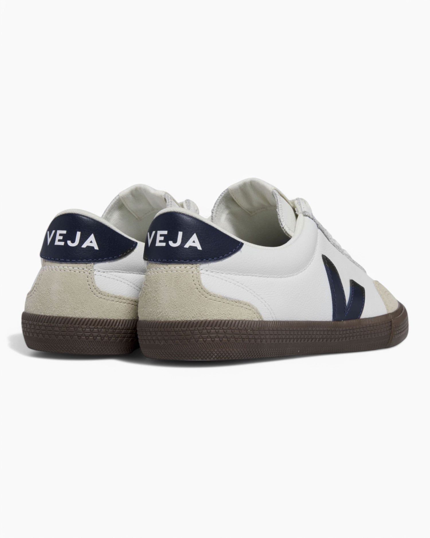 Volley is VEJA's first model, launched in 2005, inspired by the Brazilian volleyball shoes of the 70s. Volley Organic Traced Leather is produced with 100% certified organic leather from farms in Uruguay. The leather undergoes a mechanical beating process that makes it thin and pliable. The logo on the tongue of the sneaker is VEJA's first logo.