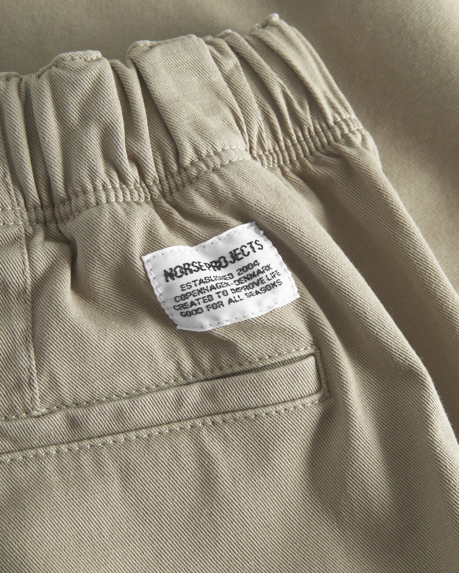 cotton twill. The pants are garment-dyed for a rich colour. Finished with a zip