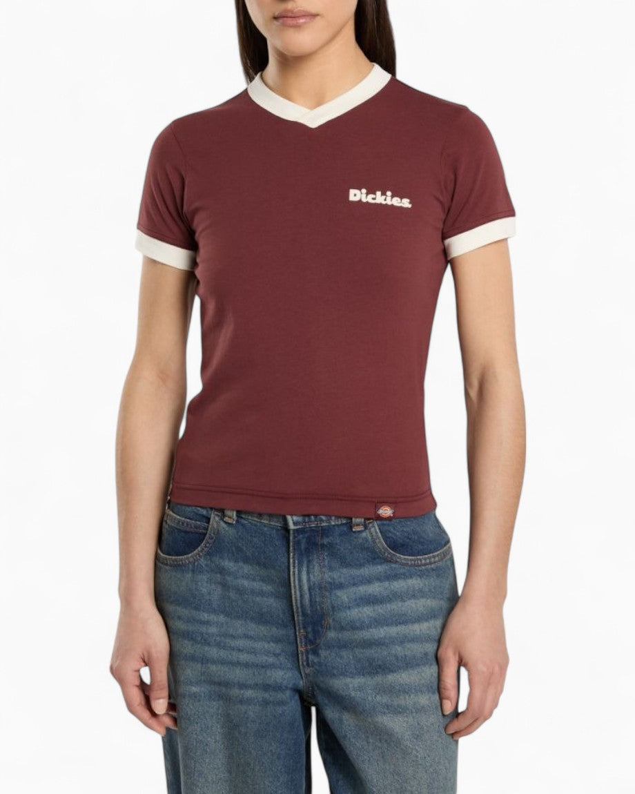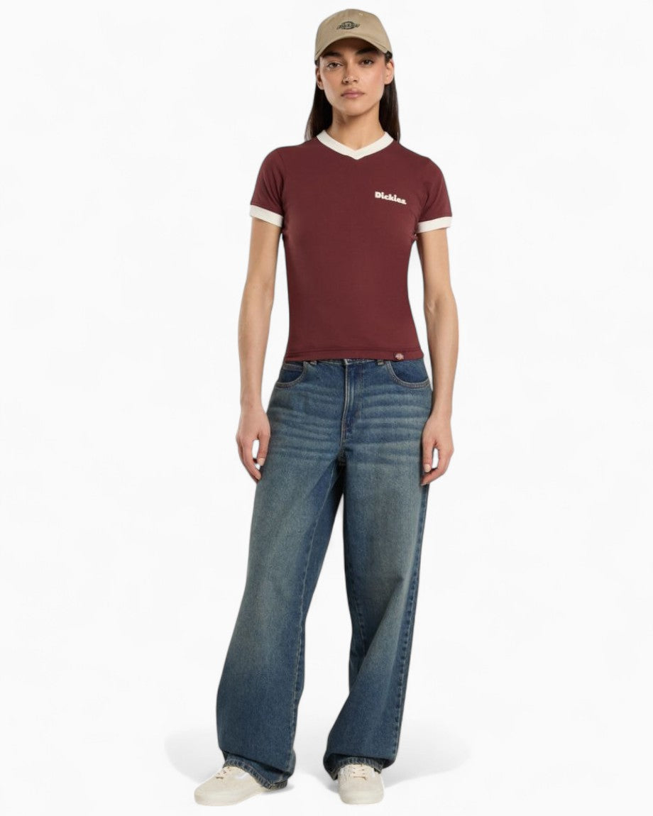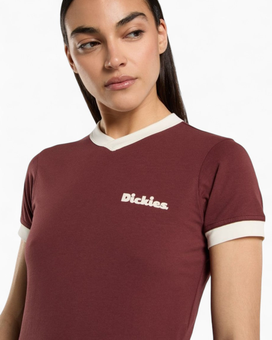 The Slayden Ringer Tee is a retro-inspired t-shirt for anytime, anywhere. Garment washed and crafted with added elastane for stretch and comfort, this t-shirt features a ribbed v-neck and cuffs and a dyed-to-match woven Dickies label in the side seam.