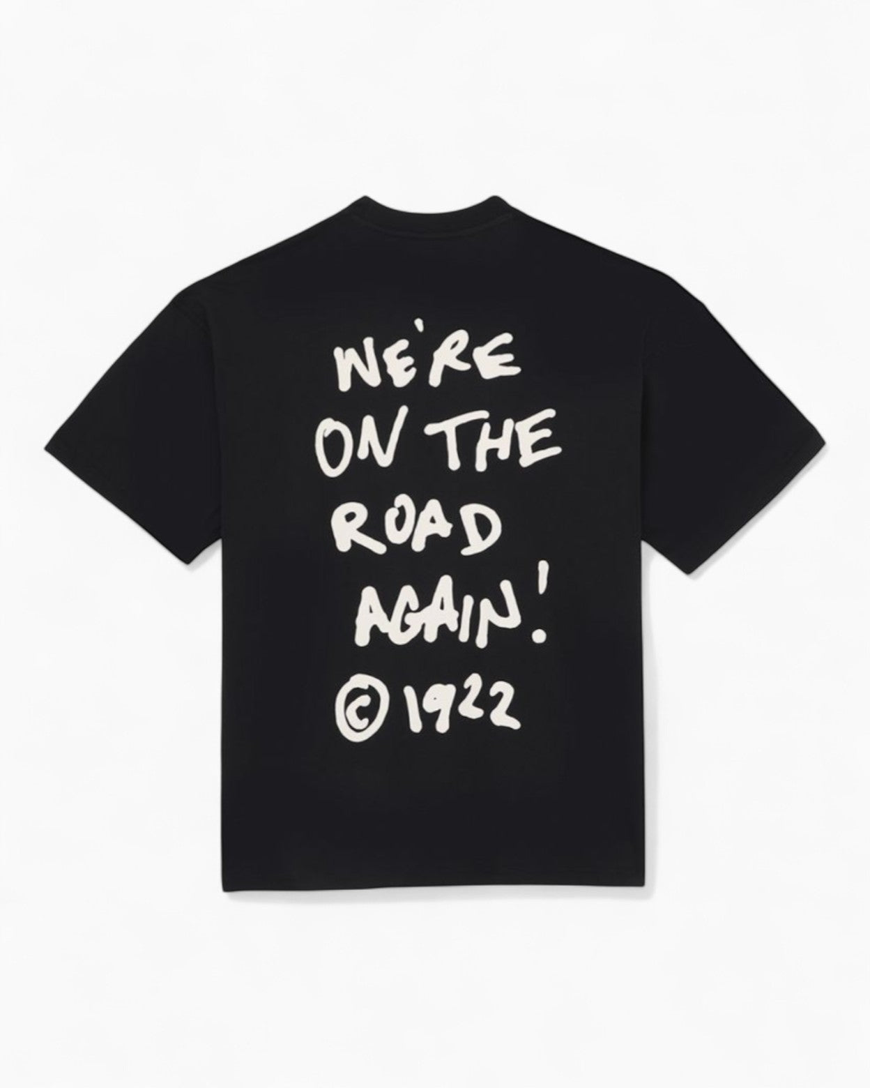 - Front – small “Dickies 1922” print; Back – large “On the road again!” slogan