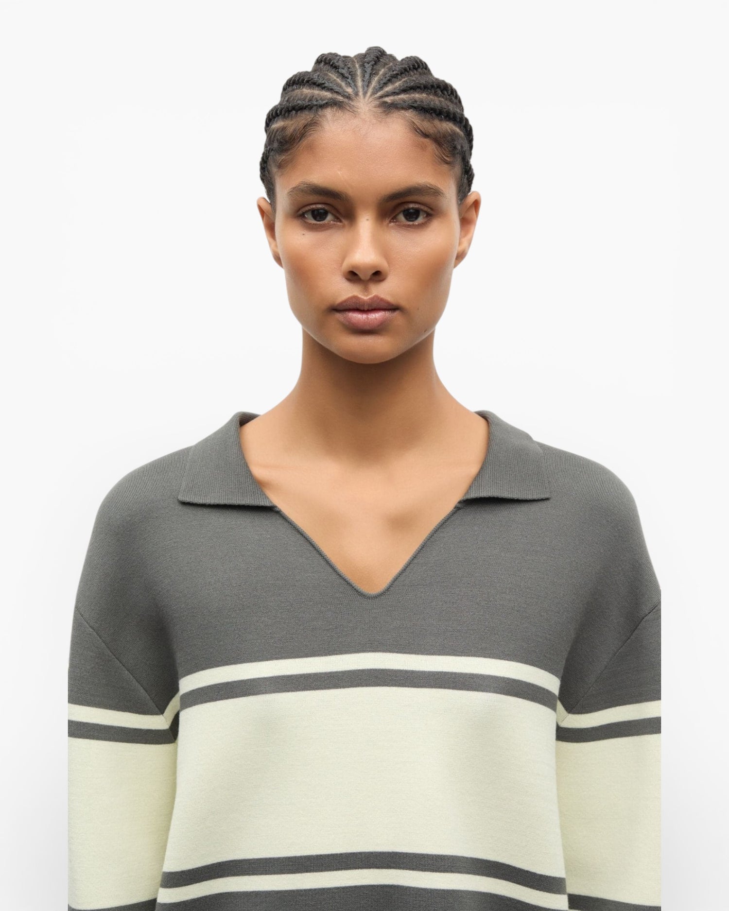 - Polo collar with V-neck