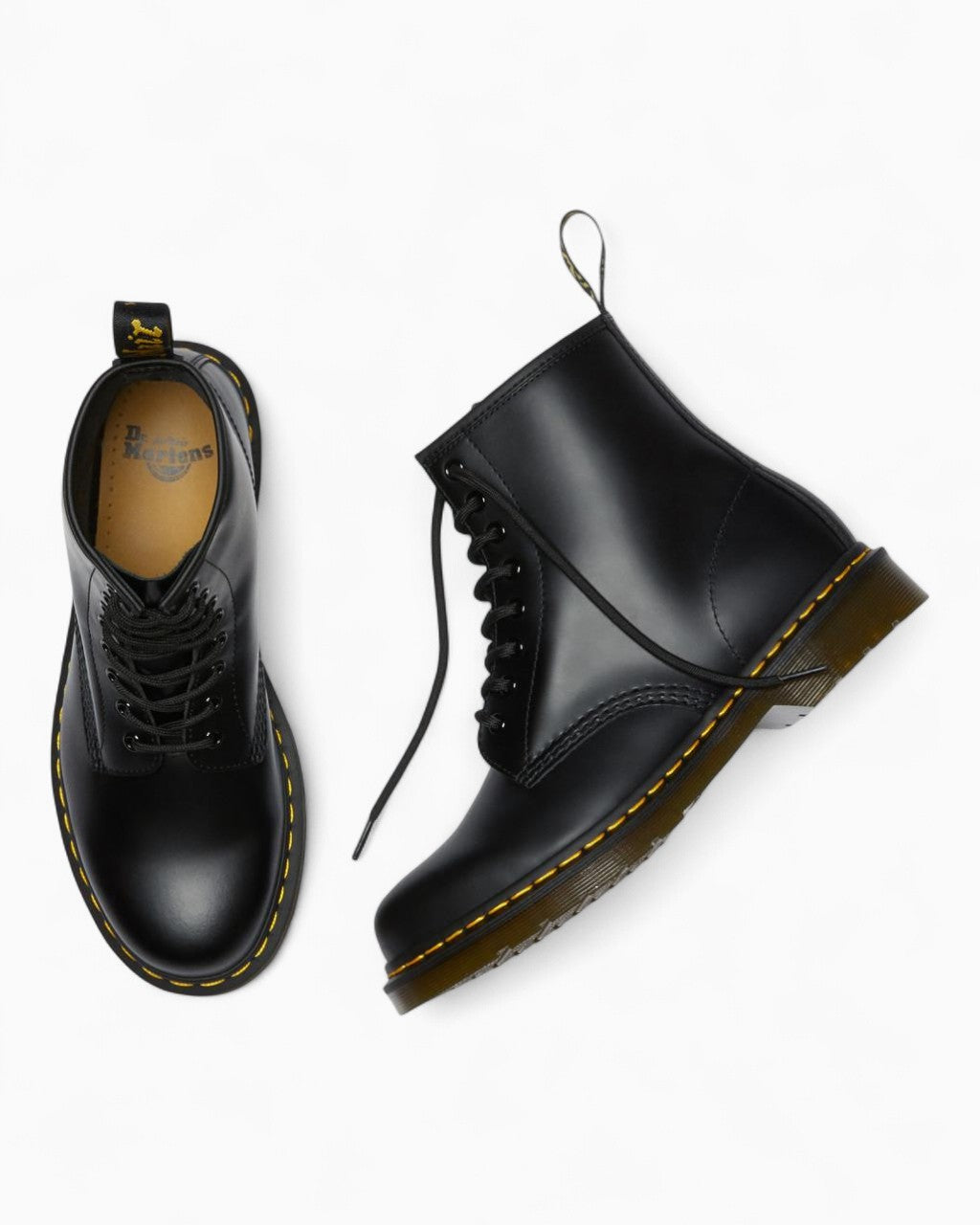 Dr. Martens 1460 Smooth Leather Lace Up Women's Boots— a true icon that’s remained unchanged since 1960. With its signature yellow welt stitching, AirWair sole, and the legendary “With Bouncing Soles” heel loop, it stands as a symbol of timeless rebellion and craftsmanship.