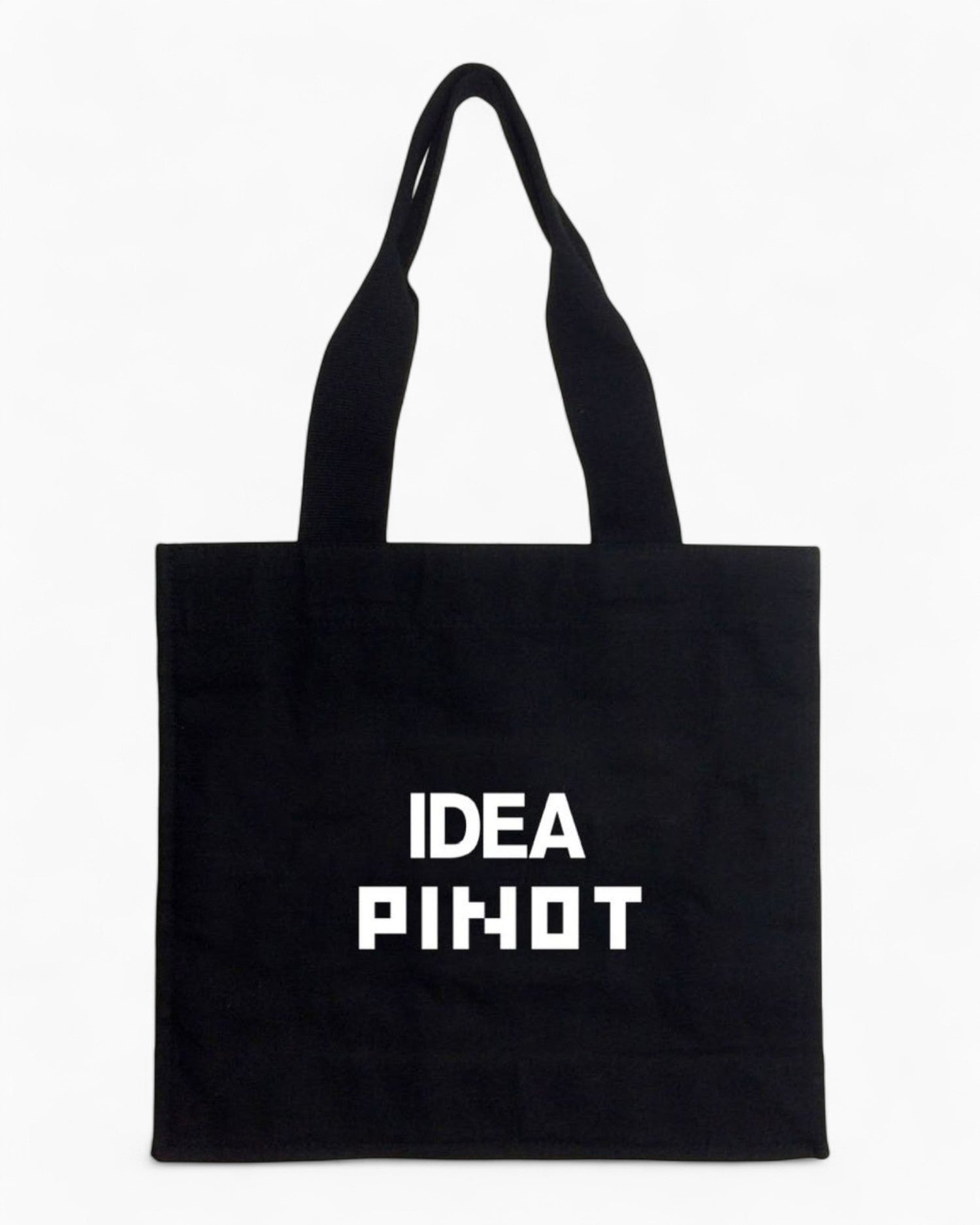Meet the new IDEA Bag — crafted from durable black eco-cotton canvas for everyday strength and style. Featuring Pinot’s Pixel Heart artwork on one side and PINOT / IDEA on the other, it blends creativity with functionality. Inside, two practical pockets keep your essentials organized.