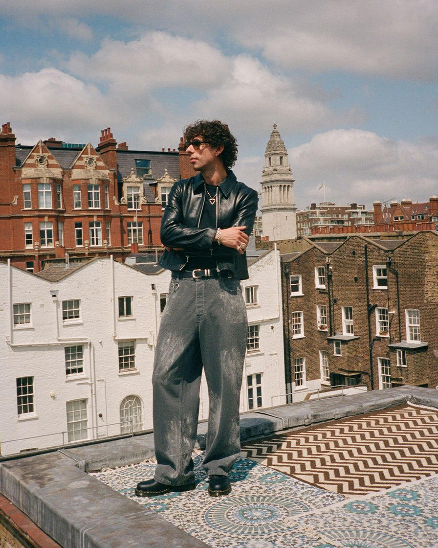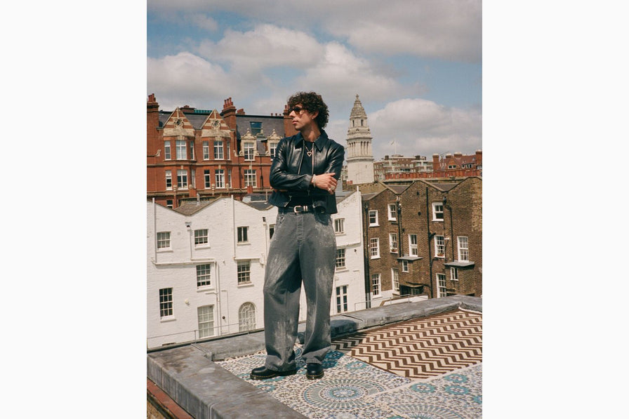 The Études Studio Loose Painted Jeans don’t just look worn in—they carry the attitude. Paired with Samsøe Samsøe’s Sashiloh leather jacket, the silhouette lands somewhere between late-night gig and quiet rooftop moment. Dr. Martens 1461 shoes ground the look with a clean finish—aged or polished, they hold their own. No extras, just what it needs.