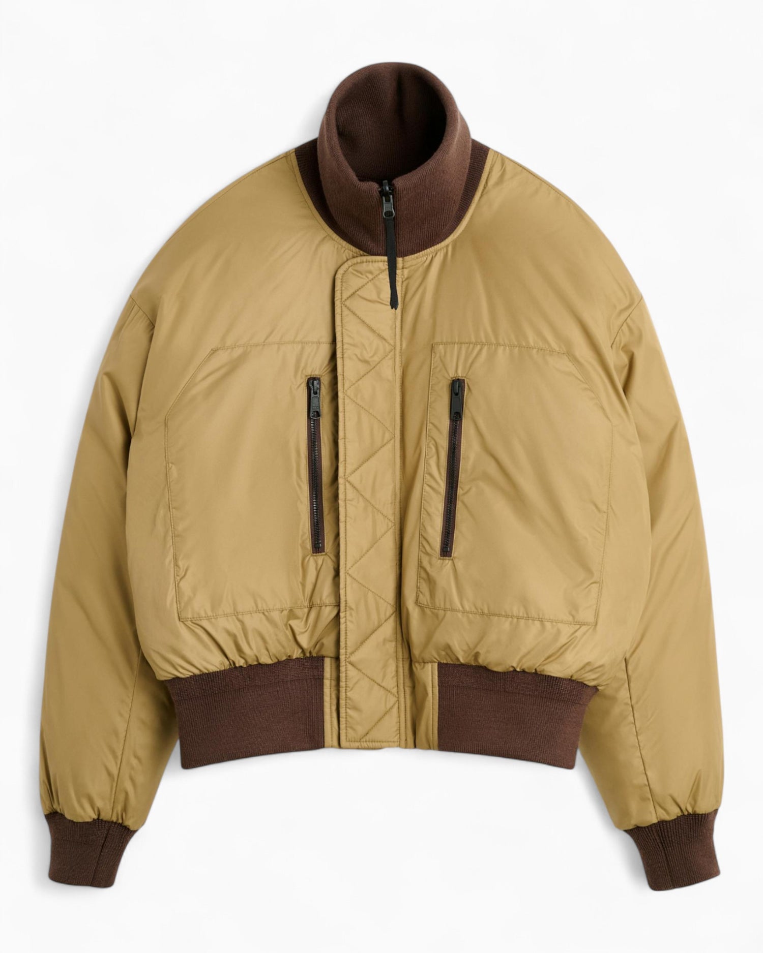 Perfect for both urban and outdoor wear, this jacket moves seamlessly between city streets and weekend escapes. Ribbed hem and cuffs evoke the classic bomber aesthetic, while the soft touch and elegant finish make it an elevated cold-weather essential.