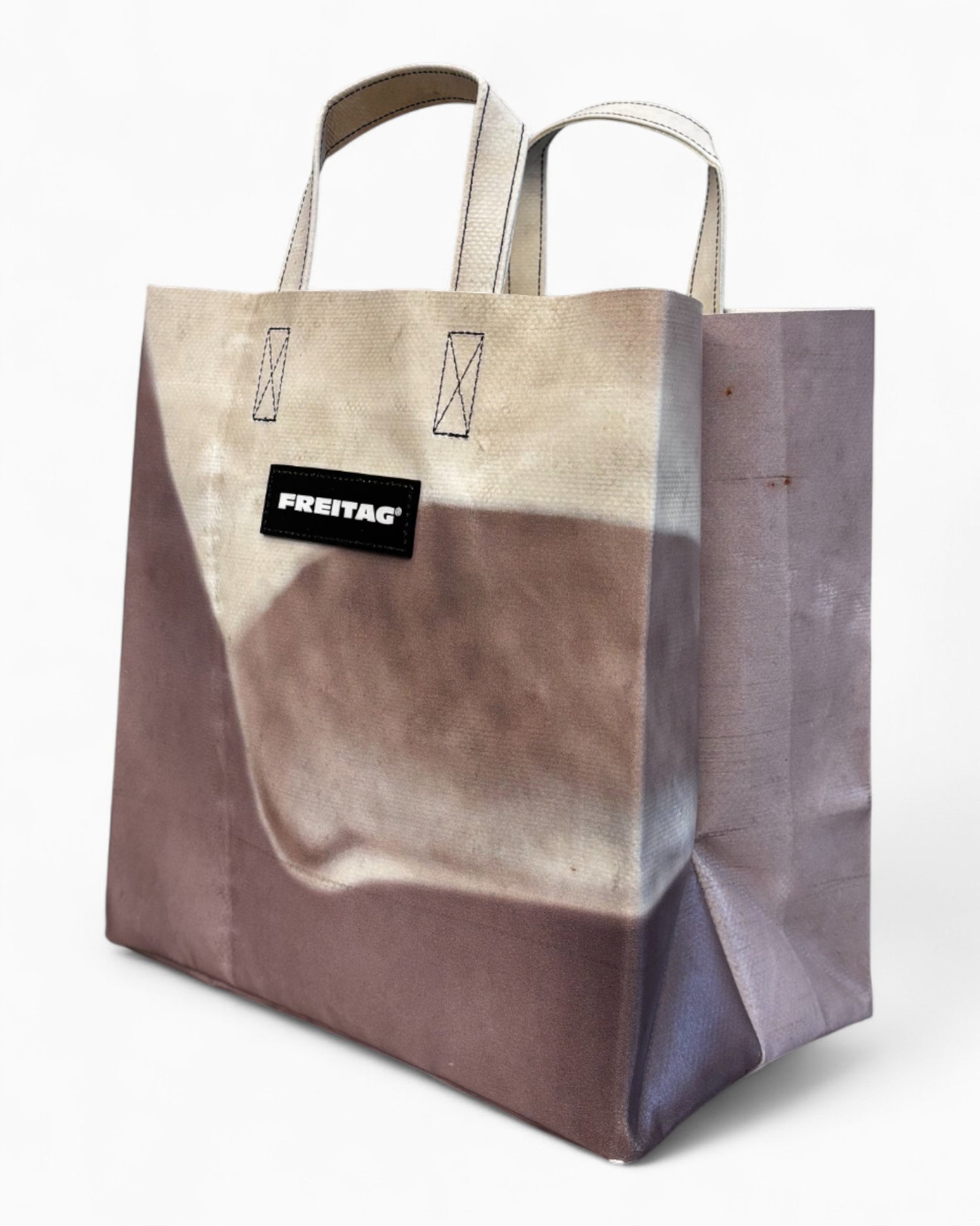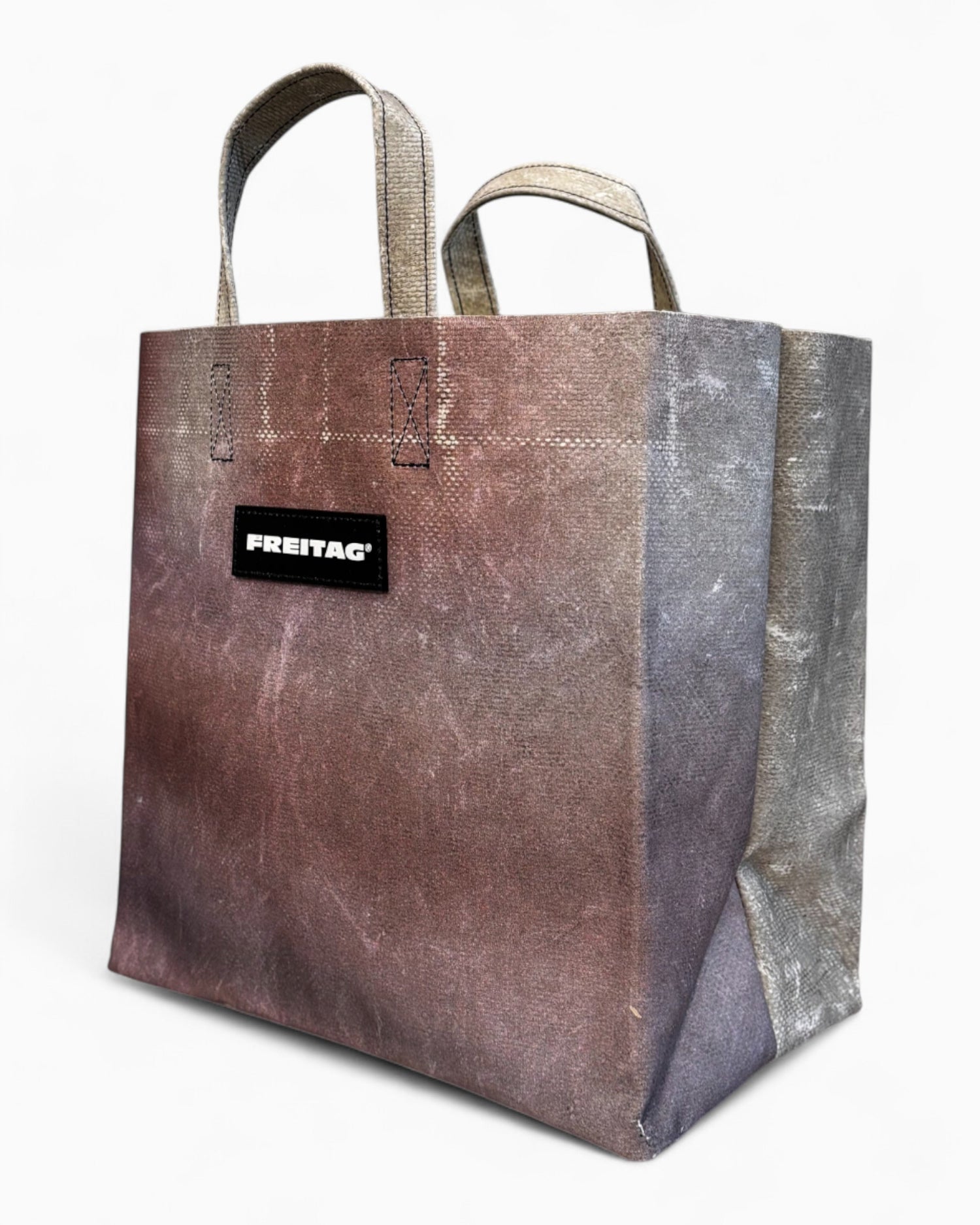 The compact yet expressive F250 Sonny Shoulder Bag is the minimalist evolution of FREITAG’s iconic F52 Miami Vice shopper. Crafted from discarded truck tarpaulins, each bag is a one-of-a-kind statement piece — durable, foldable, and unmistakably urban.
